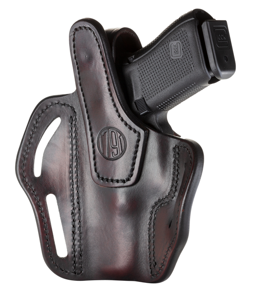 The 1791 gunleather bhx multi-fit belt holster with added retention strap delivers incredible retention and security.It includes 3 belt loops that allow you to carry two distinct positions.The fbi-cant allows for a quick reaction draw of your weapon and the back-cant is intended for quicker pickup of your target, especially useful when sitting or driving.The bhx leather design is molded and contoured for your pistol...View more