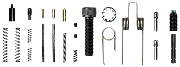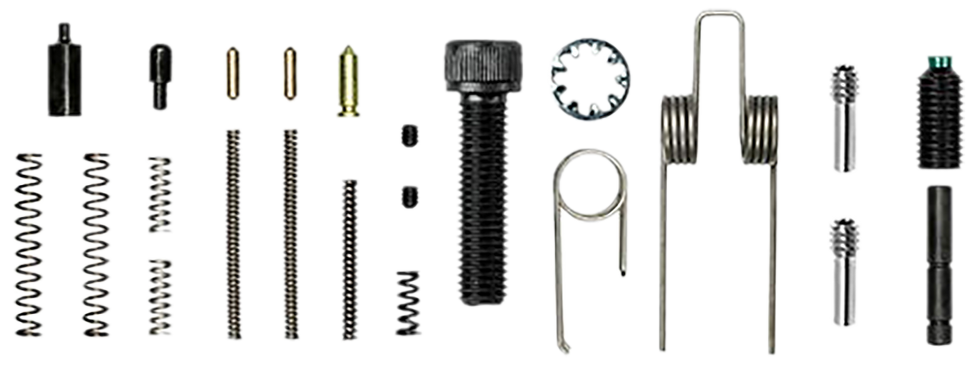 The m5 field repair kit features common parts that may rattle loose or break.Carry one in your range bag and always have what you need to get your rifle up and running again.Kit includes- 2- takedown pin detents, 2- takedown pin springs, 2- bolt catch springs, bolt catch buffer, trigger/hammer pin, safety selector spring, safety selector detent, buffer retainer, 2- buffer retainer springs, 2- trigger guard roll pins, pistol grip screw, pistol grip lock washer, trigger spring, hammer spring, disconnector spring, nylon tipped tension set screw 1/4-28 x 1/2, 2- 4-40 set screw (for threaded takedown pin detent hole) and a threaded roll pin.Made in the usa.