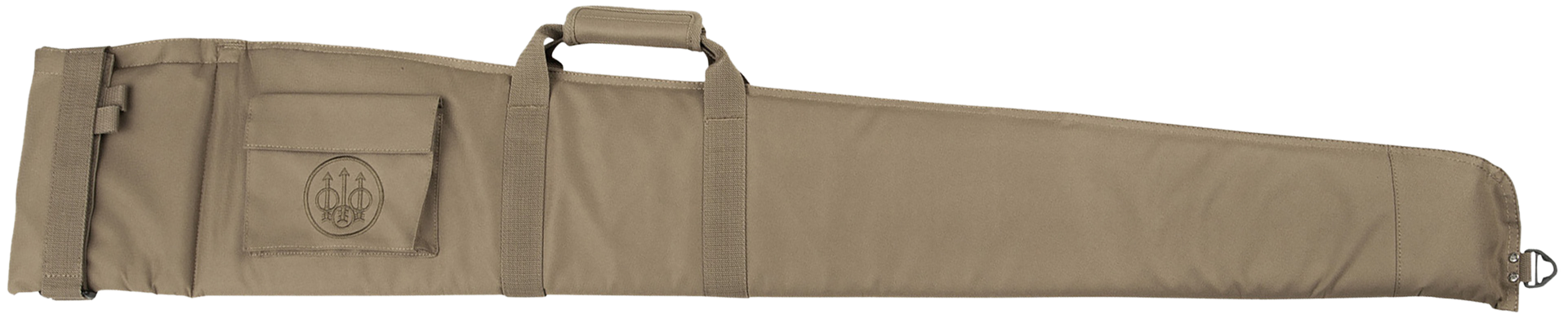 The beretta floating shotgun case features a otter brown 900d synthetic fiber exterior, carry handle, shoulder strap, velcro closure, beretta branding and exterior side pocket.Case will float with shotgun inside.Length is 51", open 55".