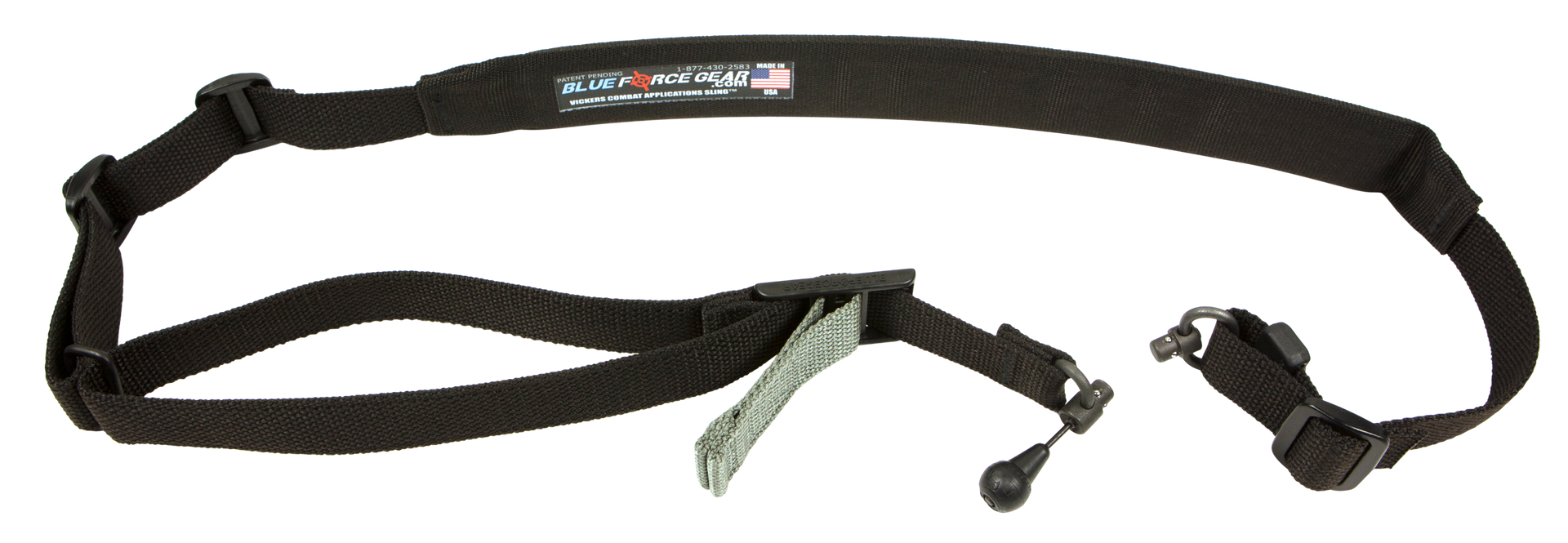 Blue force gear's vickers 221 sling allows users to switch from 2-point to 1-point mode instantly.The sling is constructed of invista solution dyed cordura webbing with itw ghilletex acetal hardware.A standard push button swivel and polymer molded burnsed socket are woven onto the allowing full adjustability.It is compatible with any weapon with two qd sling swivel sockets with the rear socket towards the end of the receiver.The red (rapid emergency detachment) swivel is sewn to the front of the sling towards the muzzle, and is machined from steel, with a phosphate coating for corrosion resistance with stainless steel internals and sphero-conical shaped pull knob.It allows you to go to 2-point to 1-point by pulling on the red swivel knob and reinserting it in to the burnsed socket at the rear of the receiver.This padded model has a black finish.