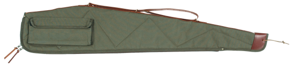 Bob allen's rifle case is constructed of canvas with quilted lining, leather back strap and sling and a nylon zipper.This 44" model has a green finish.Type: Gun CaseColor: GreenDimensions: 44"Material: CanvasHardware: Full Length ZipperGuns Held: RifleView more