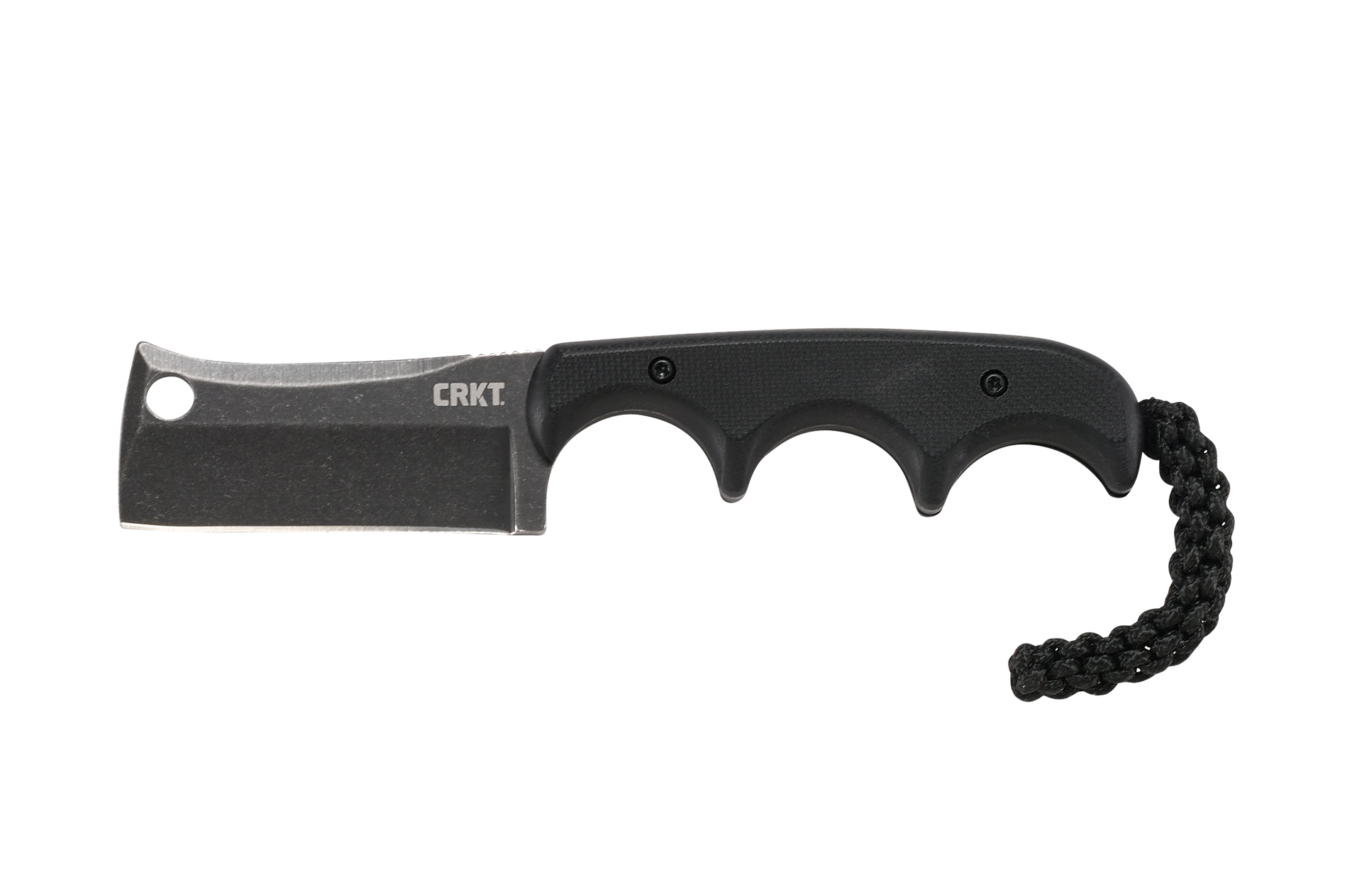 The minimalist cleaver blackout compact, fixed blade neck knife with tough handles come in handy in the woods or around the house.The black stonewashed, high carbon stainless steel blade takes an edge well and ages well, the versatile cleaver blade for superior cutting and the g10 handle provides exceptional grip in all conditions.Includes sheath.