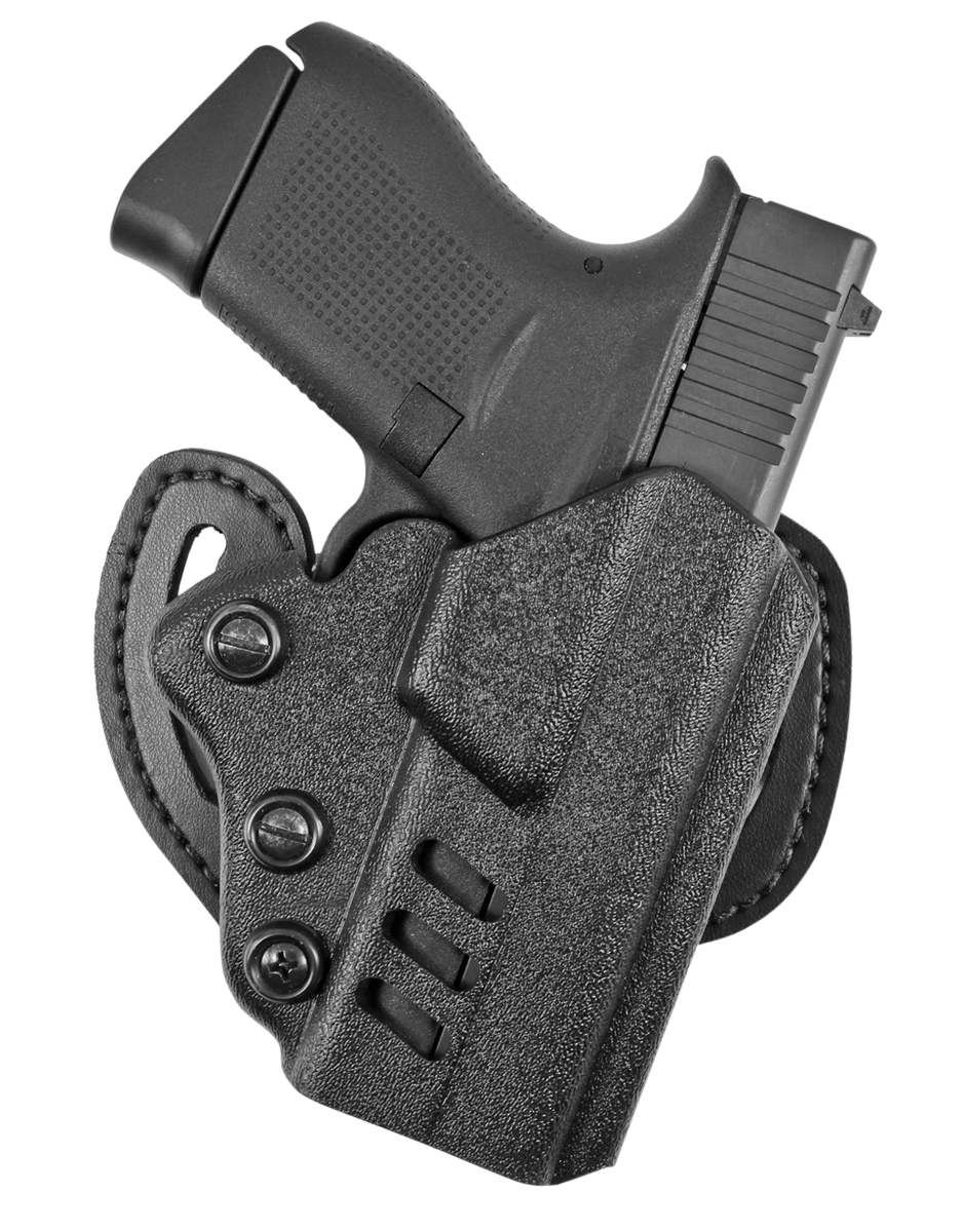 The facilitator is made with kydex and glass reinforced nylon for strength and durability and features our redi-lok trigger locking device.It can be worn strong side (butt rearward) or cross draw (butt forward).The facilitator is slim, which makes it much more concealable than the competition.The combat proven redi-lok makes this model secure and snatch resistant.Belt slots are 1.75" wide.