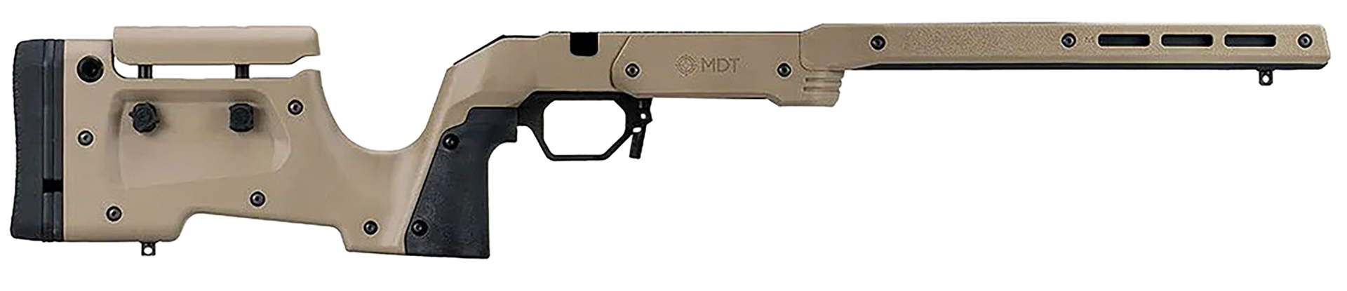 The xrs chassis is designed for shooters that want the fit and feel of a traditional shaped rifle stock with the benefits of a modern precision rifle chassis system.Each xrs chassis is constructed from a full-length cnc machined core of 6061 aircraft grade aluminum wearing high strength textured polymer panels for insulation from the elements.The precision aluminum v-block bedding system ensures fit and function to maximize the accuracy of any rifle action.The xrs chassis features a replaceable over molded and textured grip system, with both an angled grip and a vertical grip included in box.The xrs chassis is the most advanced and configurable crossover stock on the market and is the ideal performance upgrade for any factory rifle or foundation for a custom rifle build.Weighing in at 3.9lbs (depending on inlet), the xrs is ideal for both hunting or target rifles.The xrs features adjustable length of pull via spacers from 13.25 to 15+ and a quick adjust cheek piece to adjust for scope height over bore.The xrs accepts standard aics pattern magazines and has an easy to manipulate ambidextrous magazine latch.The generous 12 long forend comes with m-lok slots built in for accessory mounting and attachment of arca or picatinny rails.