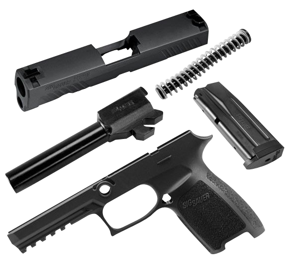 The modular pistol has arrived with the advent of sig's optional x-change kits.Removing the p320's fire control group unlocks hundreds of combinations for your sig pistol.The kit includes a complete slide, barrel, recoil spring assembly, grip module and magazine.The slide is reflex optic compatible and the kits are not available for manual safety.