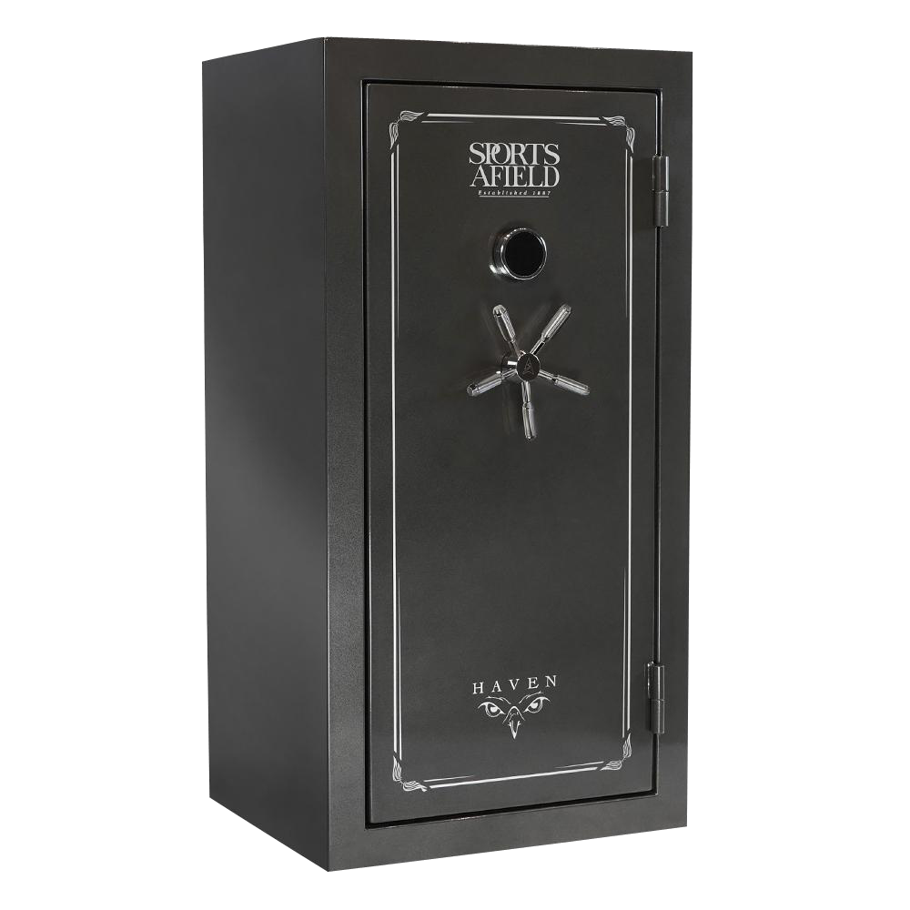 The haven series is fully enhanced with fire protection, water protection, ultimate organization and interior lighting bringing you the utmost in protection and luxury.It features 75 minutes @ 1400 degrees, is waterproof up to 2' for 7 days, ca doj approved, iilluminated e-lock with print guard technology, lighting kit, premium door organizer, dual outlet- 2 usb ports and 5-spoke chrome handle.*note: these items are drop-shipped directly from the manufacturer.Shipping time is 10-15 days after receiving order.Freight company will call to arrange delivery appointment once they are in local area.Safes are delivered to dock plate or curb only (no inside delivery).
