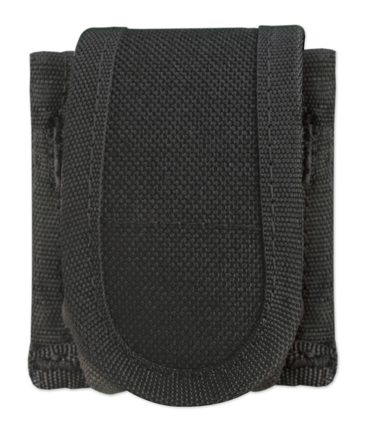Universal speed loader pouch.Holds 1.38 to.45 caliber speed loader.Cordura divider.Hook-and-loop close.Fits up to 2.25" belts, made of cordura nylon.Comes in black.