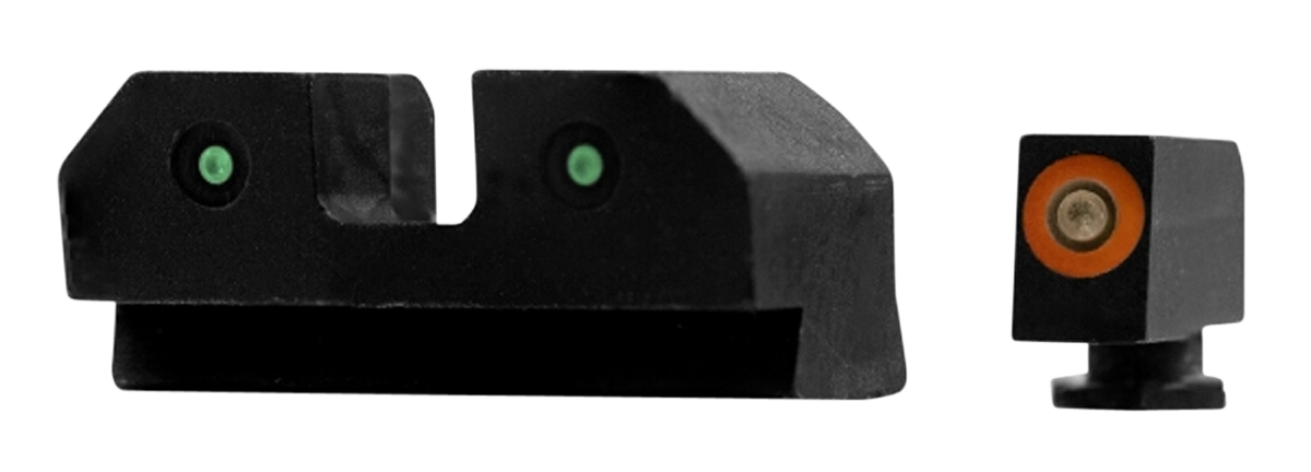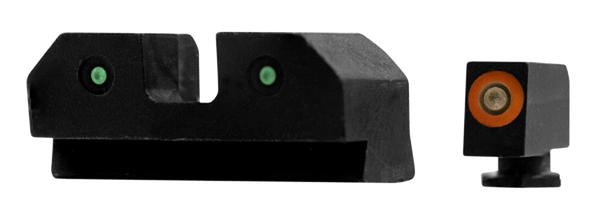 R3d night sights feature traditional 3-dot tritium, notch and post, sight picture.The tritium front sight comes equipped with our proprietary photoluminescent orange or green glow dot, which absorbs ambient light and glows in low light.The 2-dot tritium blacked-out rear illuminates, giving proper sight alignment while not outshining the front sight for accurate indexing.Our design increases focus on the front sight by using a brighter tritium vial in the front and using the tritium's light to charge the glow dot slightly.This slight difference makes the front sight glow more brightly than the two tritium vials in the rear, keeping your focus downrange.Xs r3d tritium night sights are an excellent notch and post sight picture that will keep your front sight visible day or night.That way, you'll be ready for the fight, no matter the light.Front sight length: 0.500".Front sight width: 0.145".Front sight height: 0.215".Rear sight length: 0.345".Rear sight height: 0.320".Rear sight width: 0.750".