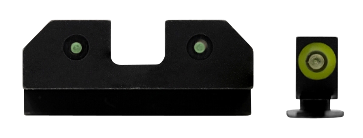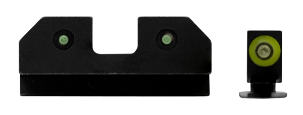 R3d night sights feature traditional 3-dot tritium, notch and post, sight picture.The tritium front sight comes equipped with our proprietary photoluminescent orange or green glow dot, which absorbs ambient light and glows in low light.The 2-dot tritium blacked-out rear illuminates, giving proper sight alignment while not outshining the front sight for accurate indexing.Our design increases focus on the front sight by using a brighter tritium vial in the front and using the tritium's light to charge the glow dot slightly.This slight difference makes the front sight glow more brightly than the two tritium vials in the rear, keeping your focus downrange.Xs r3d tritium night sights are an excellent notch and post sight picture that will keep your front sight visible day or night.That way, you'll be ready for the fight, no matter the light.Front sight length: 0.500".Front sight width: 0.145".Front sight height: 0.215".Rear sight length: 0.345".Rear sight width: 0.600".Rear sight height: 0.300".