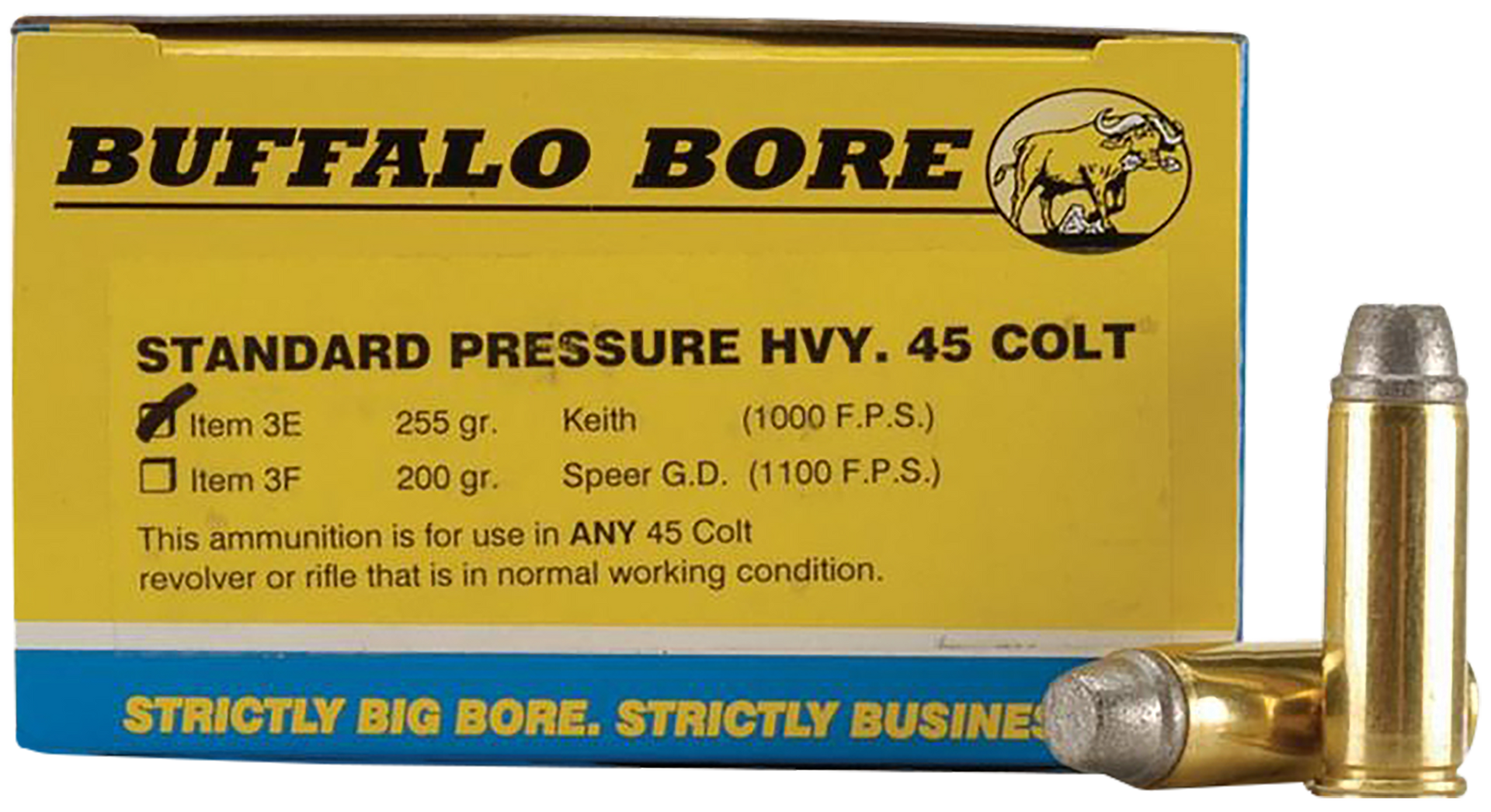 Powerful handgun and pistol ammunition manufactured with exacting standards with the gun owner in mind.Buffalo bore produces strictly big bore ammo with massive firepower and dramatic results.