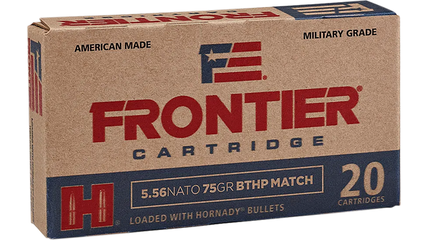 American made and military grade are the hallmarks of frontier cartridge.This line of ammo gives shooters the best of both worlds.It is configured for a wide range of shooters and applications, from target/match shooting to varmint hunting.Frontier cartridge features brass cartridge cases and military grade boxer primers and propellant.Caliber: 5.56x45mm NATOBullet Type: Hollow Point Boat Tail MatchBullet Weight: 75 grMuzzle Energy: 1410 ft lbsMuzzle Velocity:...View more