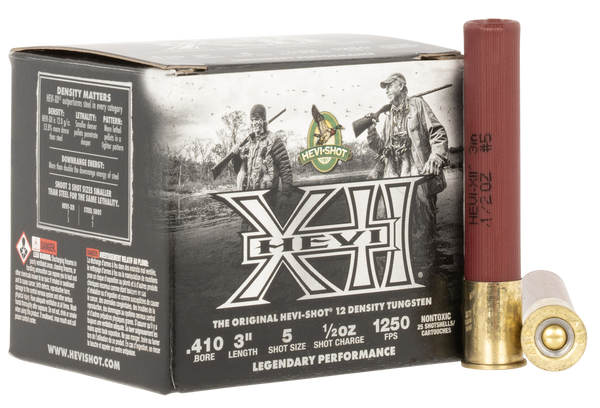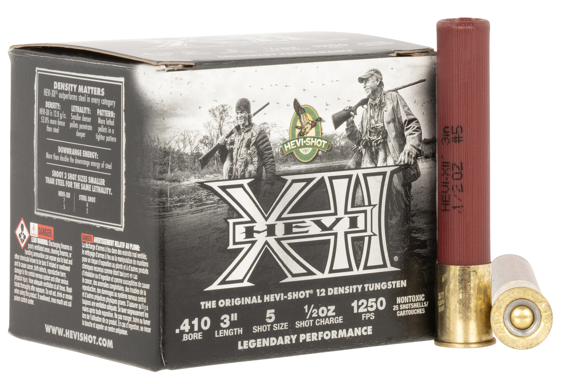 Hevi-xii is 53.8% more dense than steel, which translates to double the downrange energy.This allows you to drop down 3 shot sizes for the same lethality.It also gives 28% more devastating pellets on target.