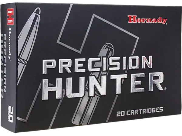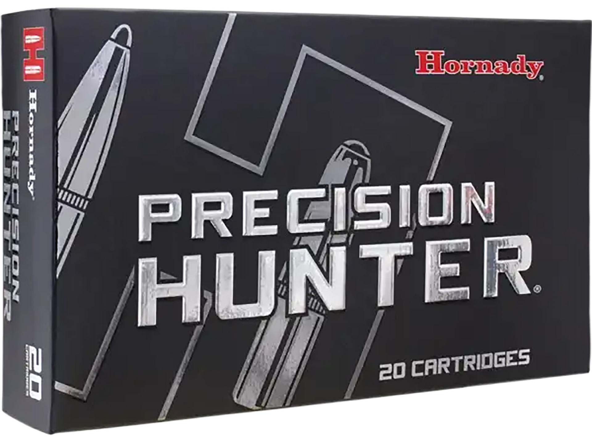 Hornady's precision hunter features a heat shield tip that resists the effects of aerodynamic heating and retains its shape to maintain the highest-in-class bc over its entire trajectory.A streamlined secant ogive with optimum boattail design, highly concentric amp bullet jackets, and heat shield tip combine for radically superior aerodynamic efficiency.With high velocity, 0-400 yard impact.The thick shank of the jacket and high interlock ring work to keep the core and jacket together providing 50-60% weight retention.