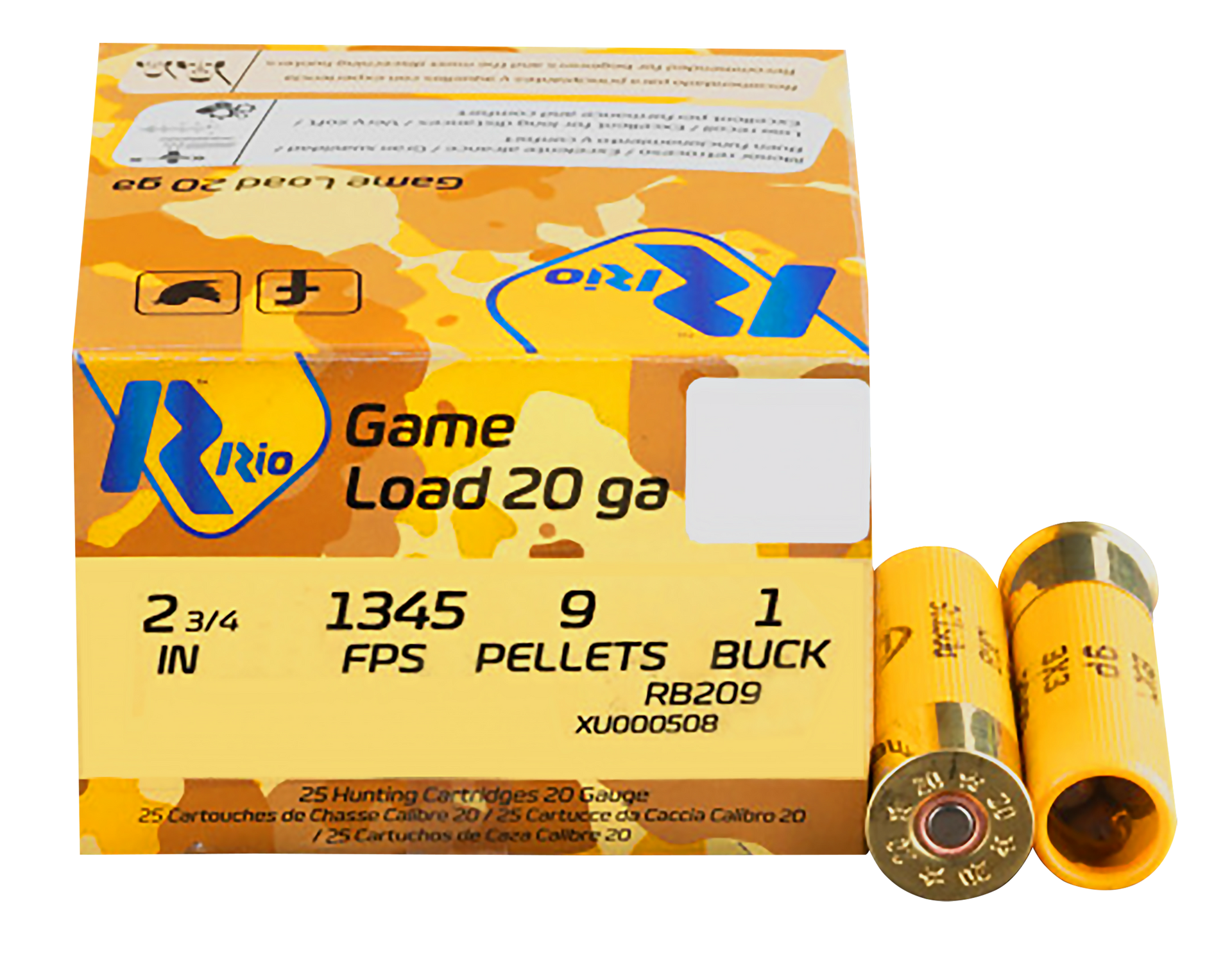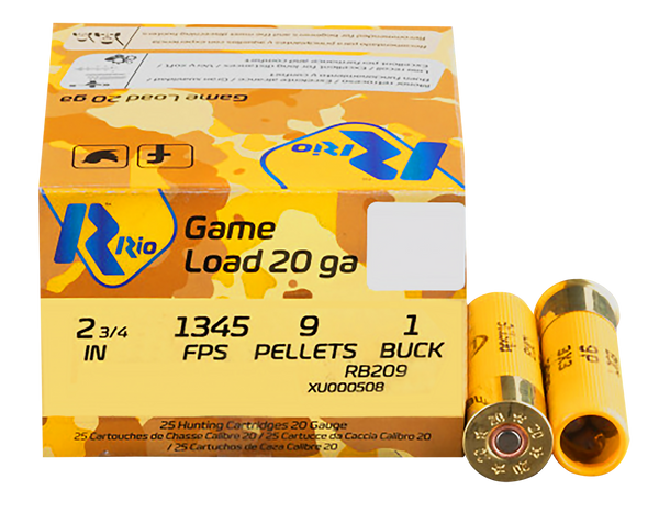Rb209 royal buck 20ga 2-3/4" 9 pellets.Royal buck buckshot cartridges are a key line for the hunter, competition shooter or those concerned with personal defense.A variety of shot sizes and payloads weights allow each shooter to match the perfect cartridge to their intended need.Adding in low-recoil options even further enhances the sense of choice.In all of our buckshot loads, our proprietary wad that ensures a cohesive payload flight path and pattern dispersion.