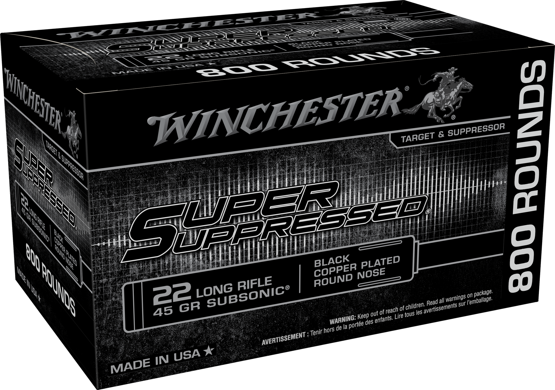 Super suppressed ammunition is optimized for firearms equipped with suppressors.Offering clean and reliable performance, the super suppressed line is engineered for noise reduction, decreased barrel/suppressor fouling and recoil mitigation.Consistent performance and exceptional accuracy is backed by generations of winchester legendary excellence.