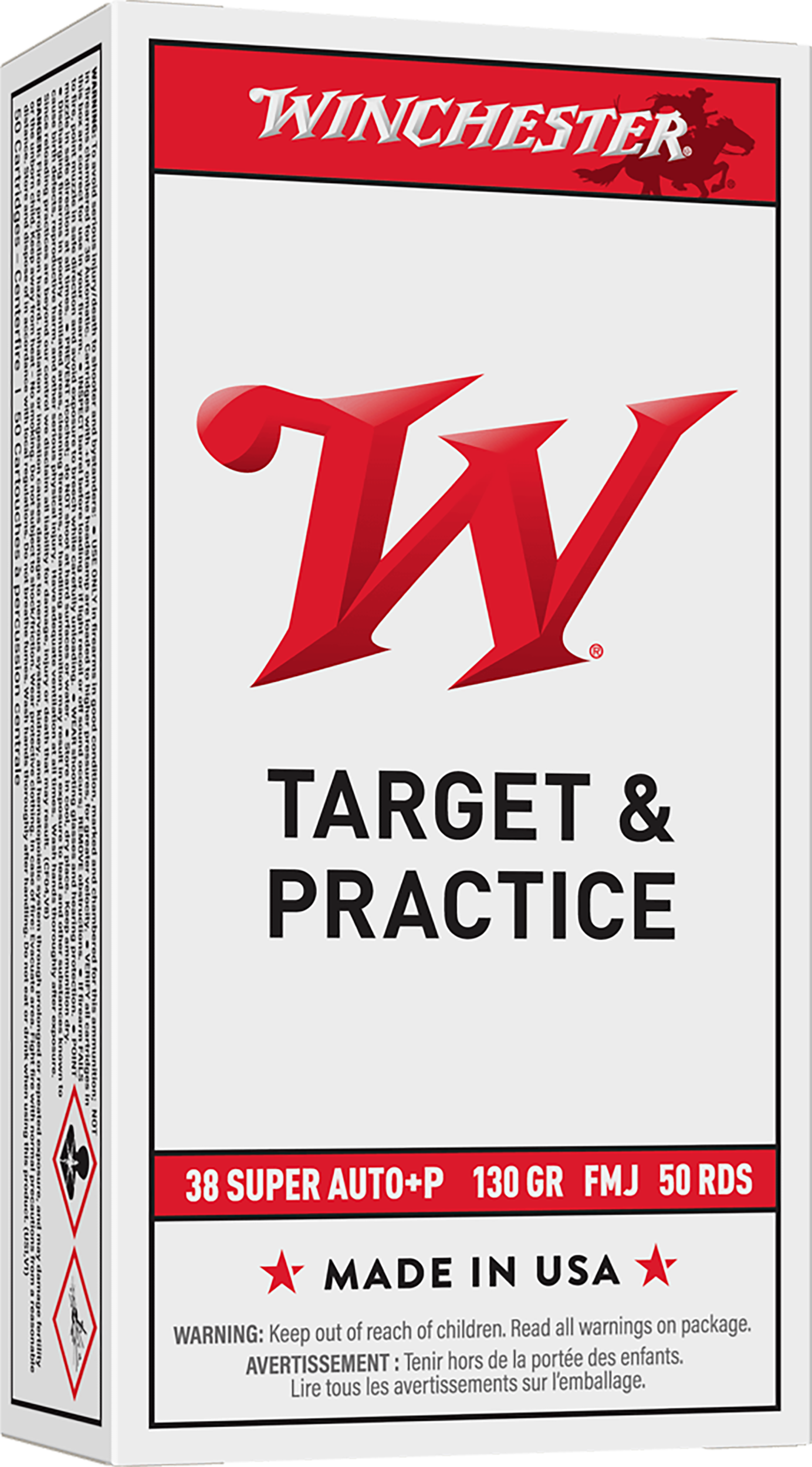 For plinking, target and range shooting, this ammunition offers a full metal jacket bullet for sure functioning, no expansion, consistent accuracy, reduced barrel fouling, and controlled recoil.Rating: +PCaliber: 38 SuperBullet Type: Full Metal JacketBullet Weight: 130 grMuzzle Energy: 426 ft lbsMuzzle Velocity: 1215 fpsRounds Per Box: 50Boxes Per Case: 10Application: Target ShootingCasing Material: BrassHazair: YesView more