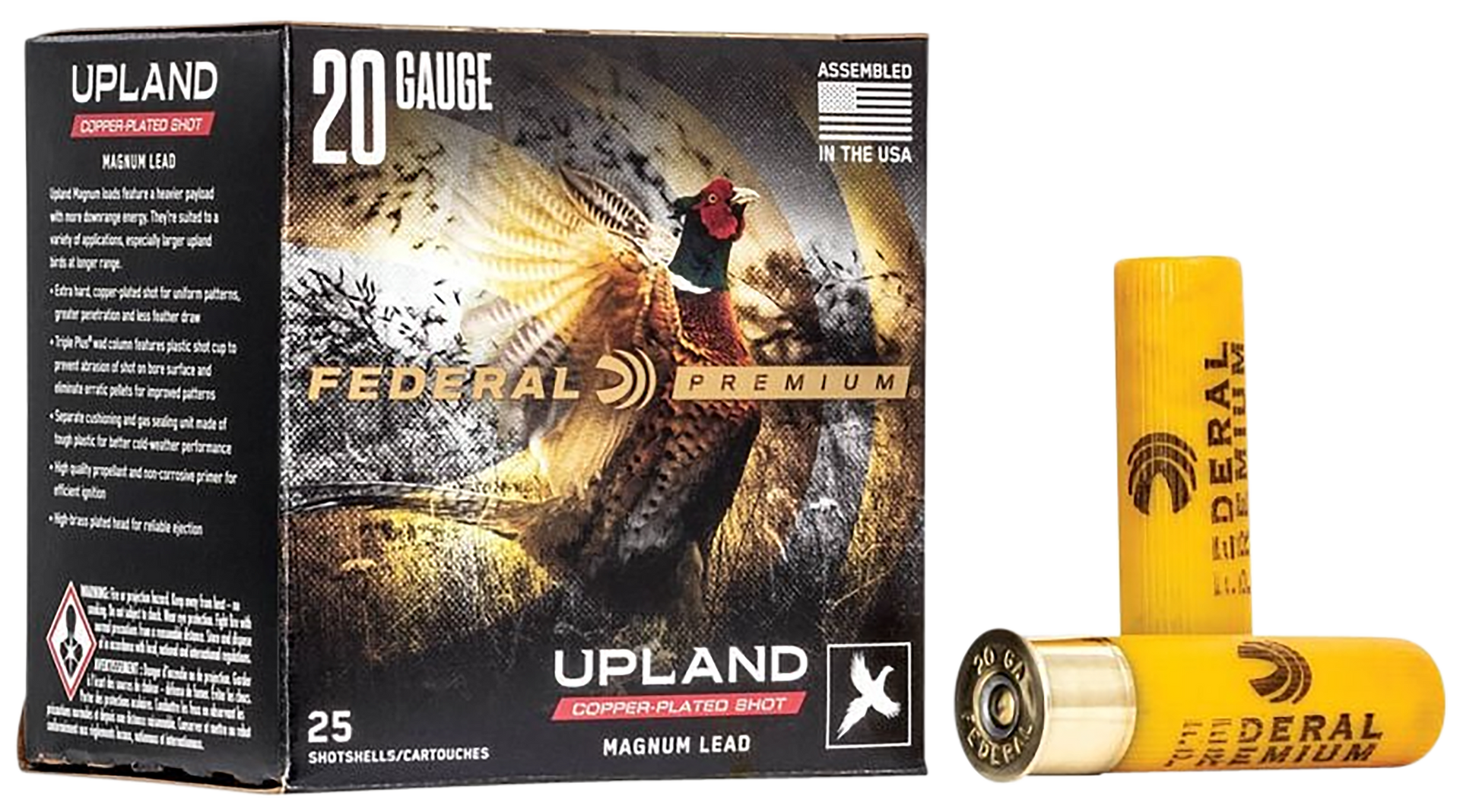 Upland loads feature federal premium copper-plated lead shot and the best components for the most consistent, deadly patterns possible for upland hunting.These magnum loads have buffered shot for tighter patterns, less feather draw, and maximum penetration.