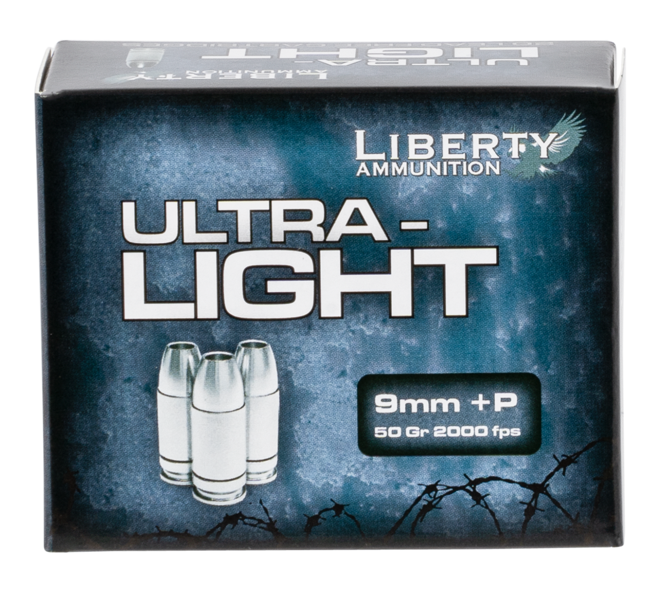 Liberty's ultra-light sets the bar even higher.The case is half the weight, but twice as strong.It combines liberty's innovative civil defense projectile with shell shock techs' groundbreaking cases.Rating: +PCaliber: 9mm LugerBullet Type: Lead Free Fragmenting Hollow PointBullet Weight: 50 grMuzzle Energy: 462 ft lbsMuzzle Velocity: 2040 fpsRounds Per Box: 20Boxes Per Case: 10Application: Home DefenseCasing Material: Nickel-Plated AluminumHazair: YesView more