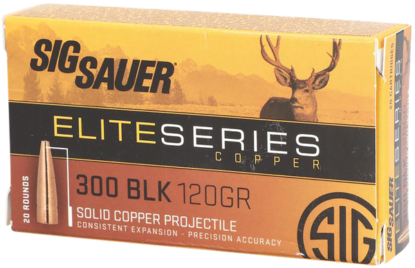 Sig elite series copper rounds use premium-quality powders and primers for minimum velocity variation and yield a 1.8x diameter expansion.Perfected for easy rifle feeding, with an optimized nose geometry, and premium nickel-plated shell casings that deliver consistently reliable accuracy for taking down game.Caliber: 30-06 SpringfieldBullet Type: Copper SolidBullet Weight: 150 grMuzzle Energy: 2840 ft lbsMuzzle Velocity: 2920 fpsRounds Per Box: 20Boxes Per Case: 10Application: HuntingCasing...View more