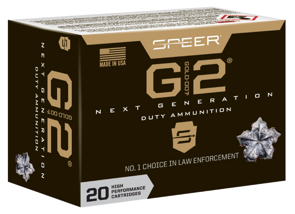 Gold dot is the no.1 load for law enforcement, and we offer the same performance to you.Each load features speer's exclusive uni-cor method, which bonds the jacket to the core one molecule at a time at the very beginning of the bullet construction process.This virtually eliminates core-jacket separation and creates a precision hollow point that is accurate, tough, and unbelievably consistent.The g2 offers the ultimate performance for self-defense thanks to an exclusive nose design.Instead of a large hollow-point cavity, the g2 has a shallow dish filled with a high-performance elastomer.On impact, the material is forced into engineered internal fissures to start the expansion process.The result is extremely uniform expansion, better separation of the petals, and more consistent penetration across barrier types through full-size handguns.