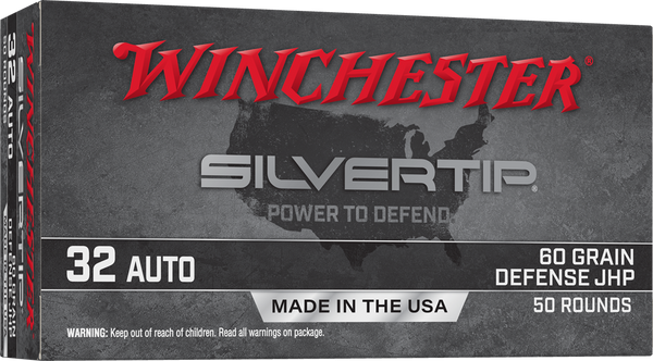 Silvertip offers the time-proven design with the power to defend.Engineered jacket profile ensures reliable functioning, precise accuracy and consistent expansion.Hollow point provides maximum stopping power.Caliber: 32 ACPBullet Type: Jacketed Hollow PointBullet Weight: 60 grMuzzle Energy: 125 ft lbsMuzzle Velocity: 970 fpsRounds Per Box: 50Boxes Per Case: 10Application: Home DefenseCasing Material: BrassHazair: YesView more