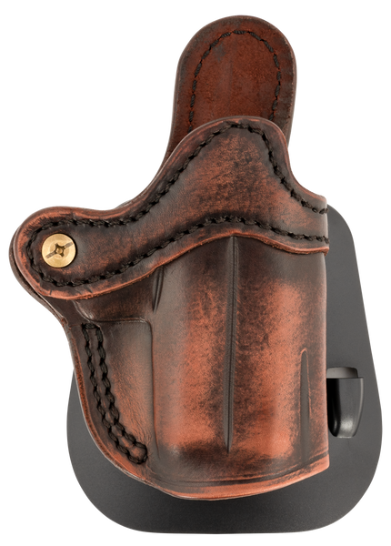 The optic ready paddle holster compact is designed to accommodate compact and sub compact firearms in the 2.5-to-3-barrel size range.Allows an optic and the added paddle gives you great portability and a quick on and off.Additionally, the sweat guard will protect your gun from tarnishing and will act as a comfortable barrier between you and your hammer preventing any gouging into your side.This holster features an open top design for quick draw, reinforced stitching to ensure quality and security, and a multi-fit design that's hand crafted to accommodate a wide range of firearms.It also includes an optic cut that accommodates most pistol optics.Compatible with 1911 3"; bersa thunder 380; glock 42, 43, 43x; kahr k9; kimber 1911 3", micro 380, micro 9, ultra carry; ruger lc9, sr22; sig sauer p238, p365, ultra nitron; springfield hellcat; taurus gx4, walther ppk and similar frames.