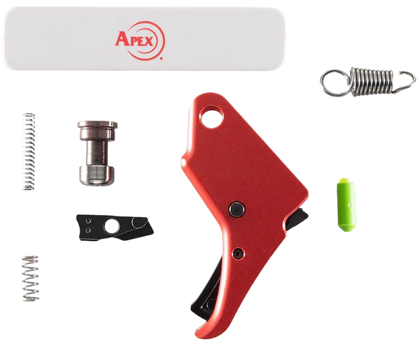 This kit is a combination of the apex duty/carry kit for the m&p shield and the apex action enhancement red trigger for the m&p shield.The action enhancement trigger directly replaces the factory hinged trigger with a solid aluminum trigger body which reduces pre-travel and over-travel by approximately 20%.It features a smooth face with a center-mounted pivoting safety that maintains factory safety values.The apex duty/carry kit was designed to provide the m&p shield pistol owner a smooth, consistent trigger pull that is approximately 2 lbs lighter (based on variations in factory tolerances) with the advantages of shorter over-travel and more detectable trigger reset.However, armorer or gunsmith installation of the ultimate striker block (usb) into the shield slide is strongly recommended.