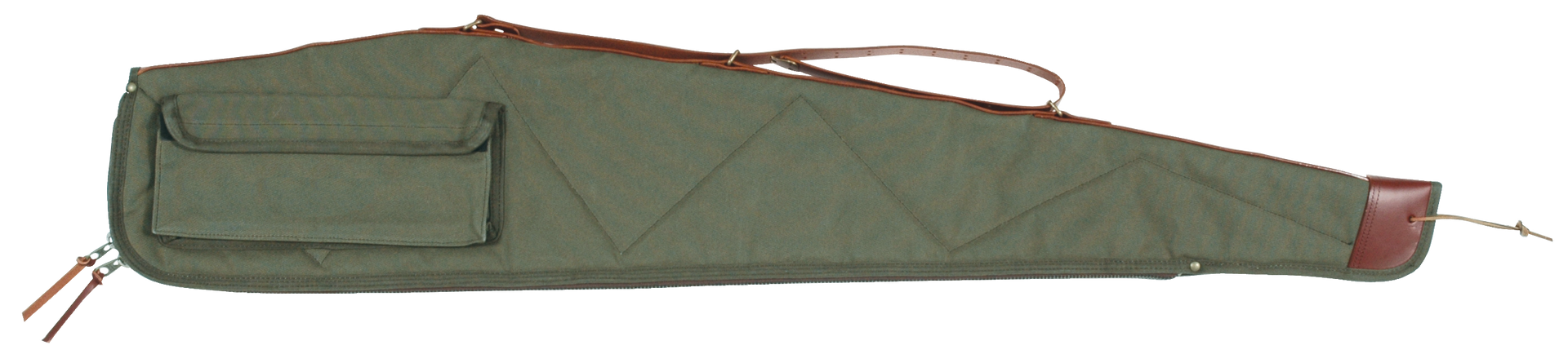 Bob allen's rifle case is constructed of canvas with quilted lining, leather back strap and sling and a nylon zipper.This 40" model has a green finish.