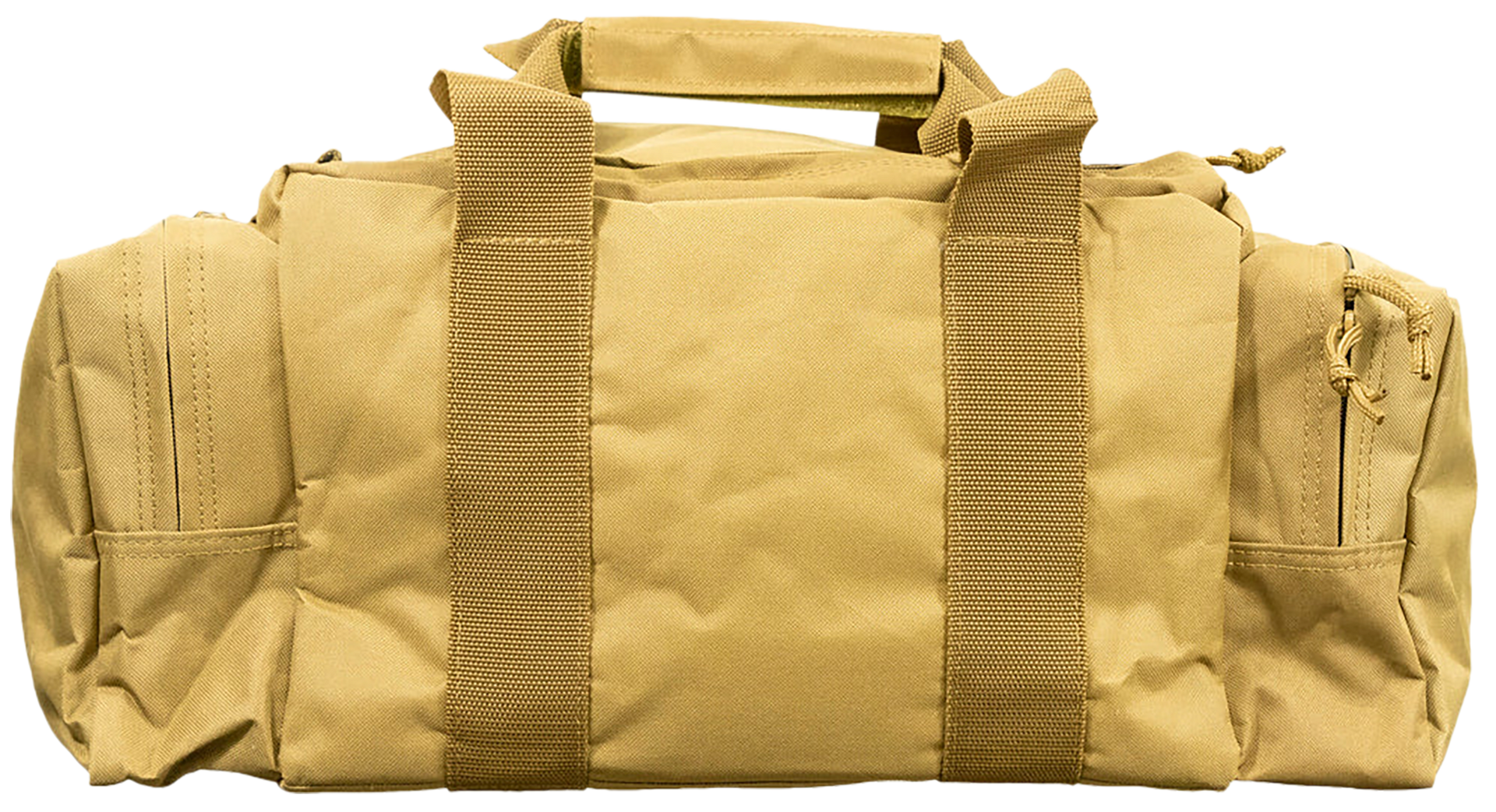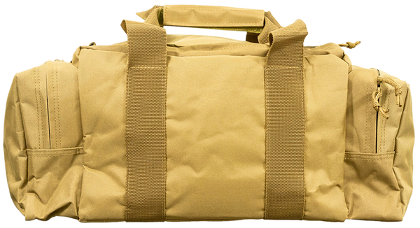 The boyt max-ops tactical range bag is constructed of a water resistant coated polyester with self repairing nylon zippers, foam padding, one front zippered storage pocket (11.5" x 7.5"), two side zippered storage pocket (10" x 7.5"), magazine storage pocket, poly webbing carry handles and shoulder strap.