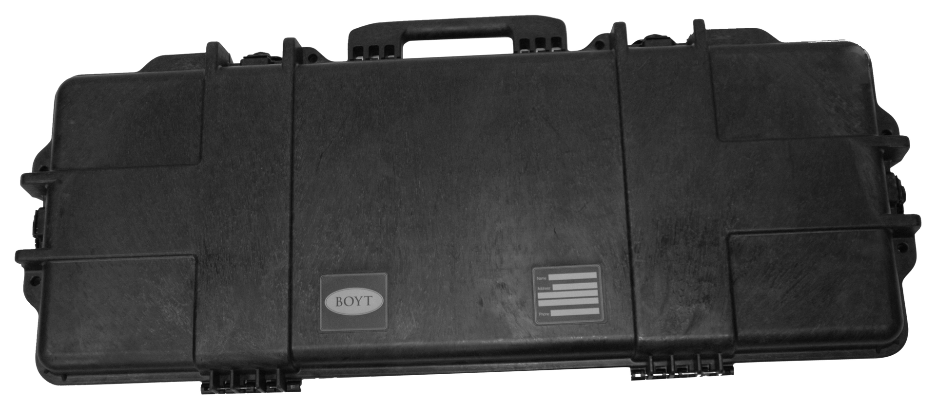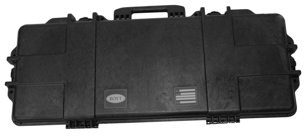 Boyt harness company's ar/carbine gun case is water resistant and dust proof with a o-ring full length gasket.It utilizes a collapsible, comfort grip handle, four (4) all steel powder coated draw latches and high-density egg crate foam.The ar/carbine case is padlock compatible.This model has a black finish and interior dimensions of 36.5" x 13.5" x 4.5".