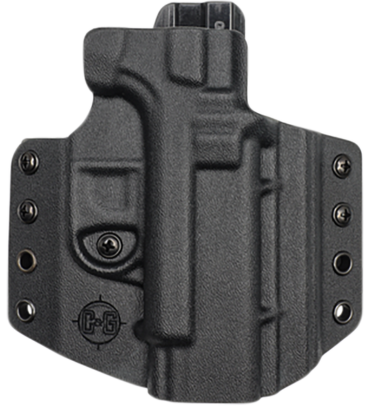 C&g's covert holster is made to be the best and most comfortable holster.It is cnc designed and manufactured out of kydex with solid locking retention.C&g holsters are 100% made in america, by veterans and law enforcement.They are designed to fit most rmr/red dots on the market, and they have an open bottom that will fit your threaded barrels and compensators
