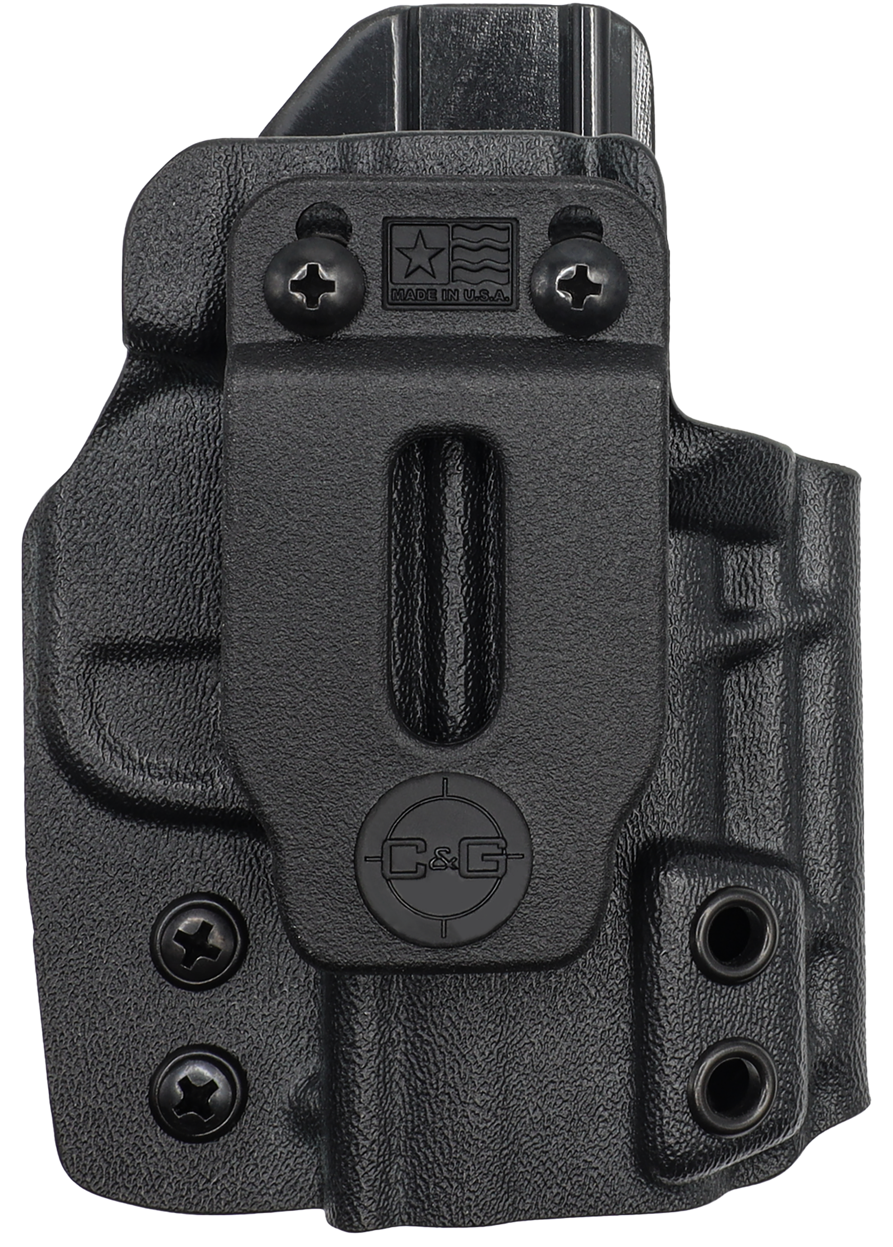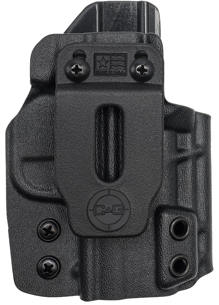 C&g's iwb covert holster is made to be the best and most comfortable concealed carry inside of the waistband (belt) holster.It is cnc designed and manufactured out of kydex with solid locking retention.C&g holsters are 100% made in america, by veterans and law enforcement.They are designed to fit most rmr/red dots on the market, and they have an open bottom that will fit your threaded barrels and compensators.