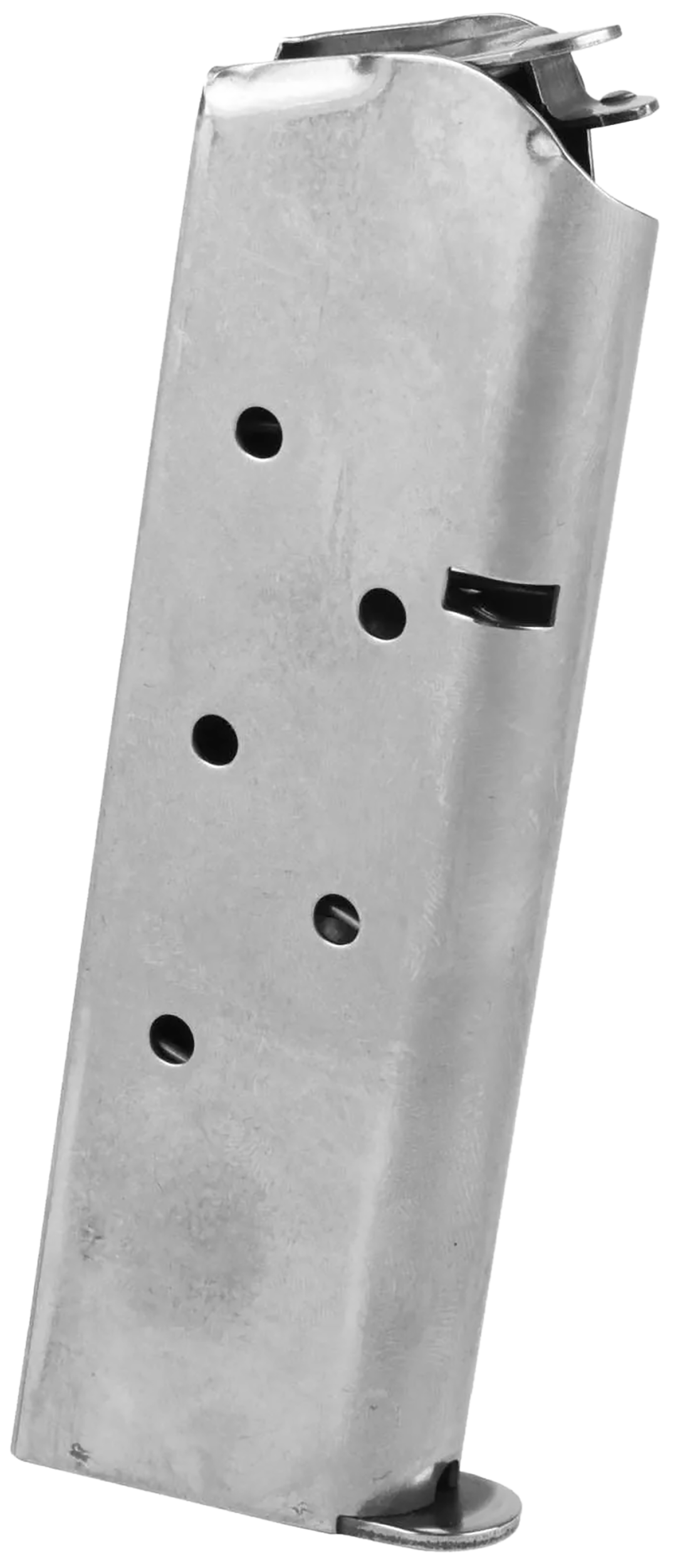 This magazine is compatible with colt 1911 government and commander.Caliber: 45 ACPCapacity: 7rdFinish: StainlessModel: 1911 GovernmentMaterial: Stainless SteelType: DetachableModel Fit: 1911 GovernmentBrand Fit: ColtCapacity: 7View more
