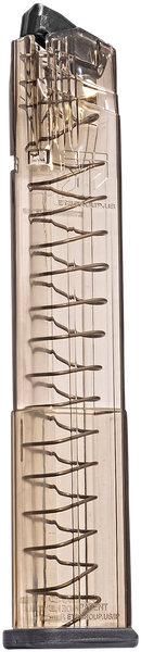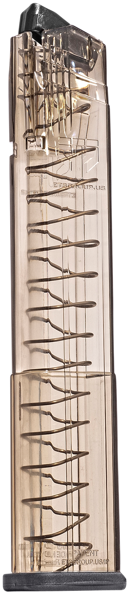 The ets pistol mag is constructed of an extreme impact resistance advanced polymer with superior heat, cold and uv resistance, translucent body, and is creep resistant which means the feed lips and body won't spread when being stored long term even when fully loaded.This mag features an easy disassembly with ets's specially designed base plate and is also designed to be compatible with glock extensions.The ergonomically designed floor plate makes it easy to grab from mag pouches.