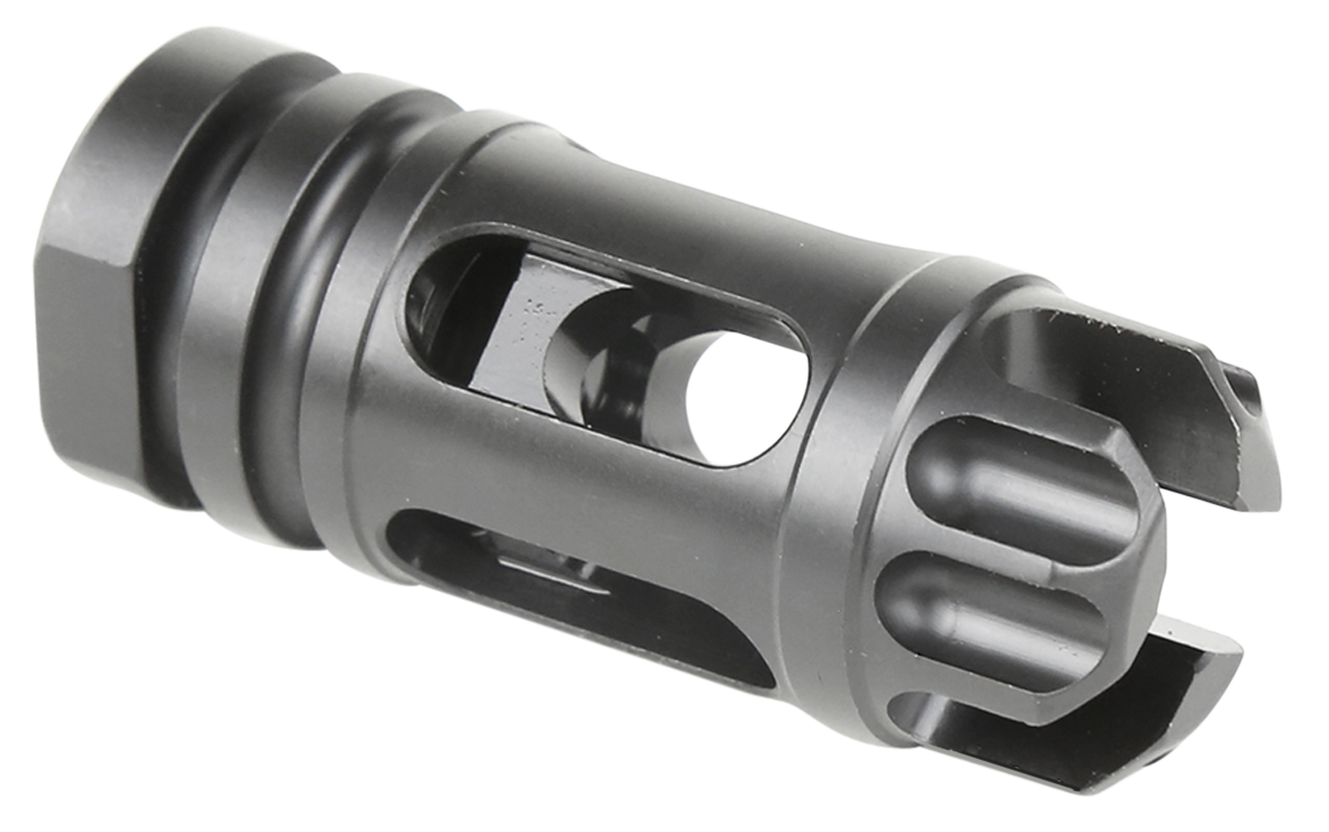 The gate-lok flash comp optimally combines the functions of three traditionally separate classes of devices- muzzle brakes, tactical compensators, and flash suppressors.The gate-lok flash comp achieved a perfect 5 out of 5 in national tactical officers association testing to achieve the rare, coveted, ntoa gold seal of approval granted to devices which achieve perfect evaluations.Compatible with the m4sd series gate-lok suppressor interface.The flash comp provides...View more