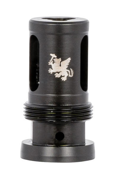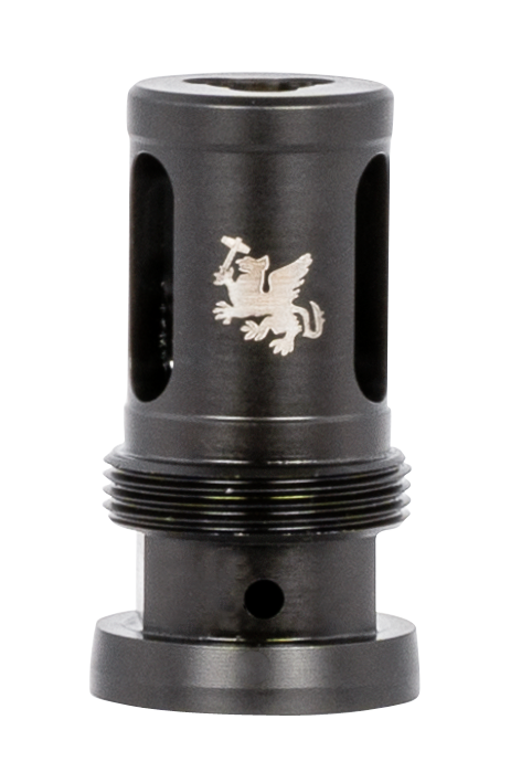 The taper mount hammer comp provides 2 sacrificial baffles that reduce recoil and ensure maximum service life of your suppressor.Slotted compensating features provide tuned muzzle stability.Cnc machined from a solid bar of heat treated 17-4ph stainless steel, the taper mount hammer comp is built to last.This muzzle device is 1.89" length from the countersunk thread shoulder to the front face, and is equal length to an a2 flash suppressor with.14" thick crush washer, so it can be used in conjunction with so called "14.7" barrels which are marketed as able to be permed to 16.1" non nfa length using an a2 and crush washer.
