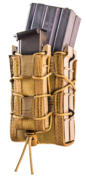 The x2rp taco combines two modular rifle mag pouches and a modular pistol mag pouch into one secure unit and can securely hold an infinite combination of mags and other accessories.Two original taco form the base holding usgi, hk, pmag, arc, fal, ak 30/ 40, lr20 and m14 magazines securely and deploying easily and silently on demand.Color: Coyote BrownMaterial: NylonModel: TACOMount Type: MOLLECompartments: 3View more