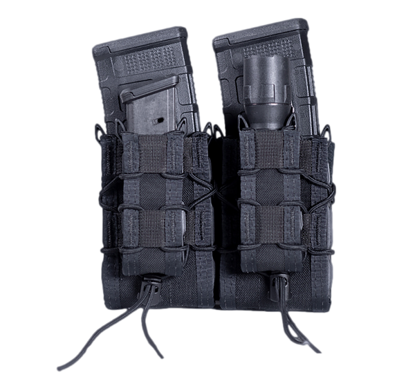 The double decker taco combines the taco and pistol taco into one secure unit.This unique pouch can securely hold an infinite combination of mags and other accessories.Both taco pouches are made of heavy-duty nylon, injection-molded polymer brackets and shock cord.Color: BlackMaterial: NylonModel: TACOMount Type: MOLLEView more