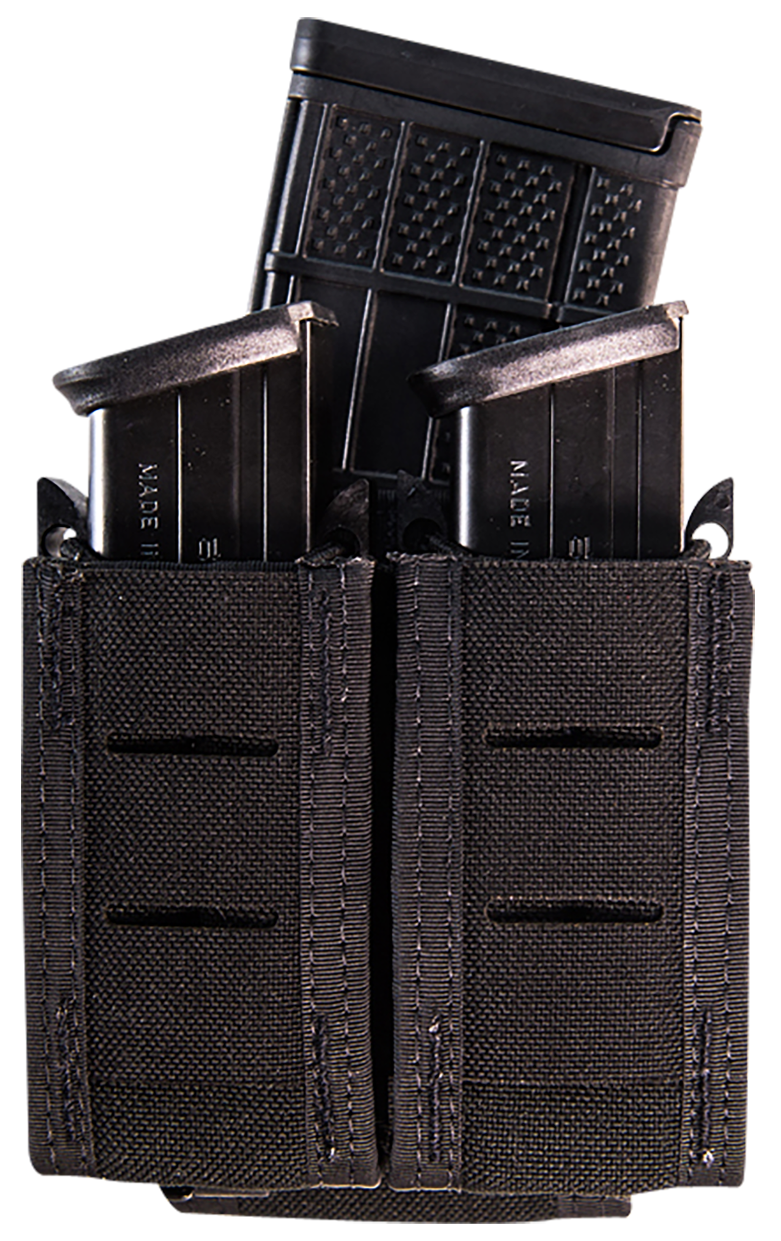 The duty line of tacos functions the same as the originals, but feature sleeker fronts and hidden bungee, which is woven internally.This combination pouch will hold most rifle- and pistol-caliber magazines, pocket knives, small flashlights, multitools and more.Mounts to both molle and belts up to 2" with hsgi universal clips proprietary heavy-duty nylon laminate, shock cord, and polymer brackets provide versatility in size and adjustable retention open-top design for quick and easy access tapered, protruding brackets enable quick and easy indexing and reinsertion of items or magazines