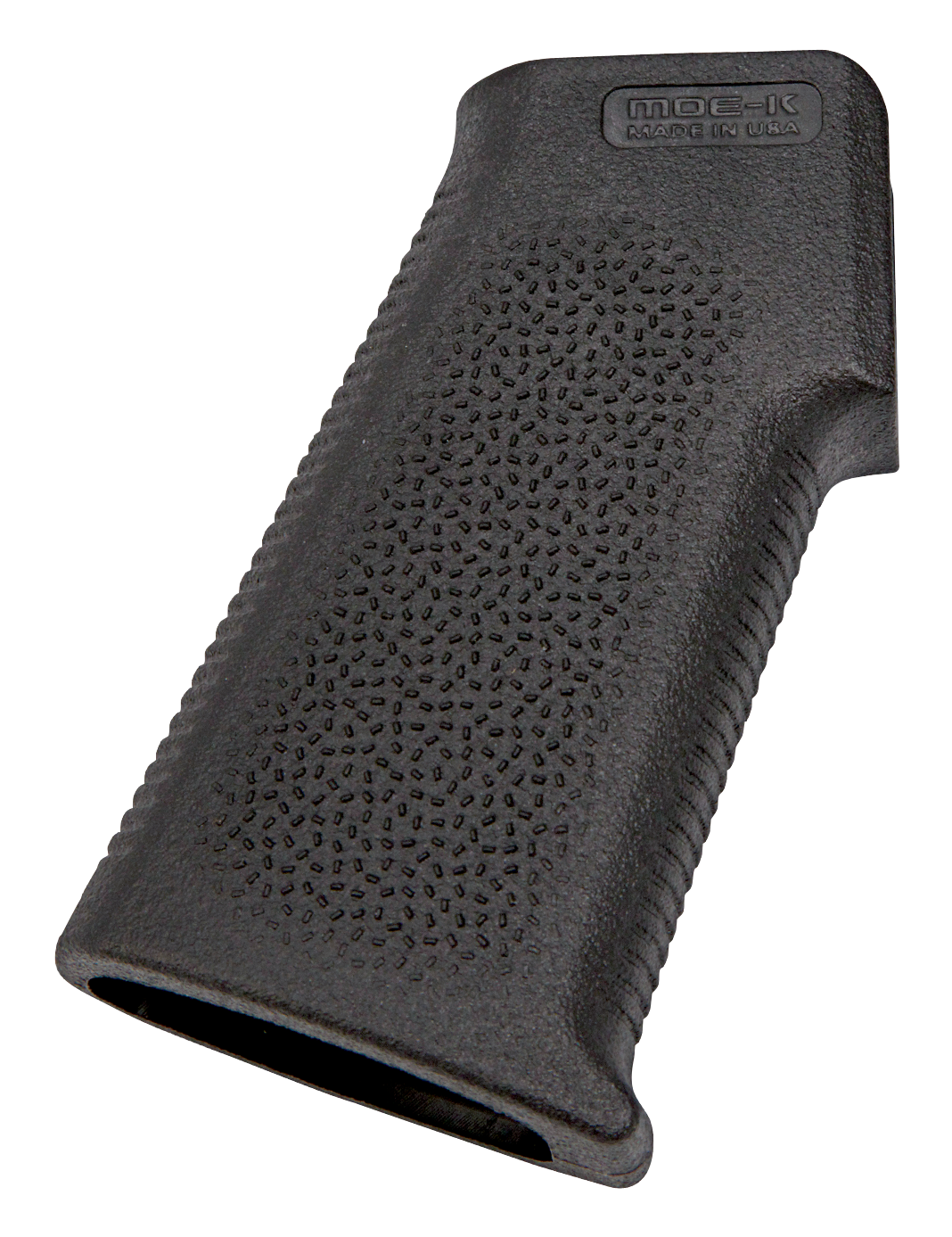 Made in the usa, the moe-k grip provides an extremely low profile and compact design with a steeper grip angle compared to more traditional styles.The more vertical grip angle is optimized for use on pdw (personal defense weapon) configurations and improves comfort and control on short lop rifles that bring the primary hand in closer to the shooter's body.The thin profile and lack of backstrap 'beavertail' also make it an excellent choice for shooters who prefer a smaller grip circumference.All mounting hardware included.Note: the moe k grip will also fit most 7.62 nato ar10/sr25 style of rifles.
