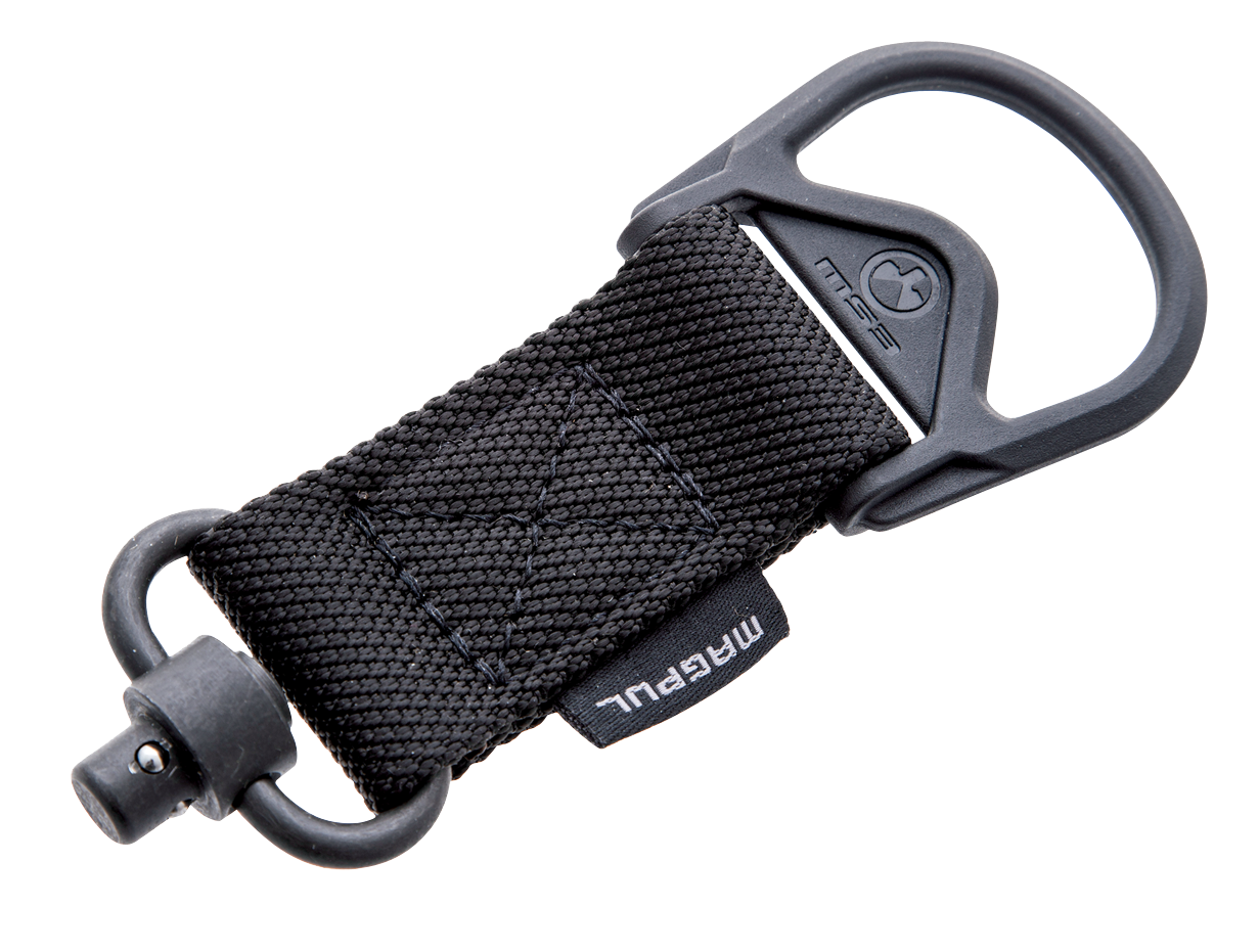 Made in the usa, the ms1 ms3 qd adapter features a manganese-phosphate finish push-button qd sling swivel for one-point attachment, and can be combined with the ms1 sling (mag513) and additional paraclip (mag541) to provide fast transition between one-point and two-point configuration.It also has a custom 1.25" wide nylon webbing material, and colored webbing has near infrared (nir) treatment to reduce ir signature.For rear attachment it works with receivers, end plates, and buttstocks that have a push-button qd socket for one-point attachment.Snap-hook style sling loops with an inner diameter of at least 3/8" are required, but 9/16" and larger will provide full range of motion of the paraclip.
