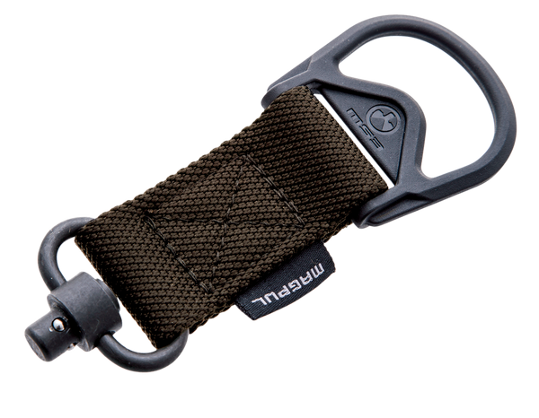 Made in the usa, the ms1 ms3 qd adapter features a manganese-phosphate finish push-button qd sling swivel for one-point attachment, and can be combined with the ms1 sling (mag513) and additional paraclip (mag541) to provide fast transition between one-point and two-point configuration.It also has a custom 1.25" wide nylon webbing material, and colored webbing has near infrared (nir) treatment to reduce ir signature.For rear attachment it works with receivers, end plates, and buttstocks that have a push-button qd socket for one-point attachment.Snap-hook style sling loops with an inner diameter of at least 3/8" are required, but 9/16" and larger will provide full range of motion of the paraclip.