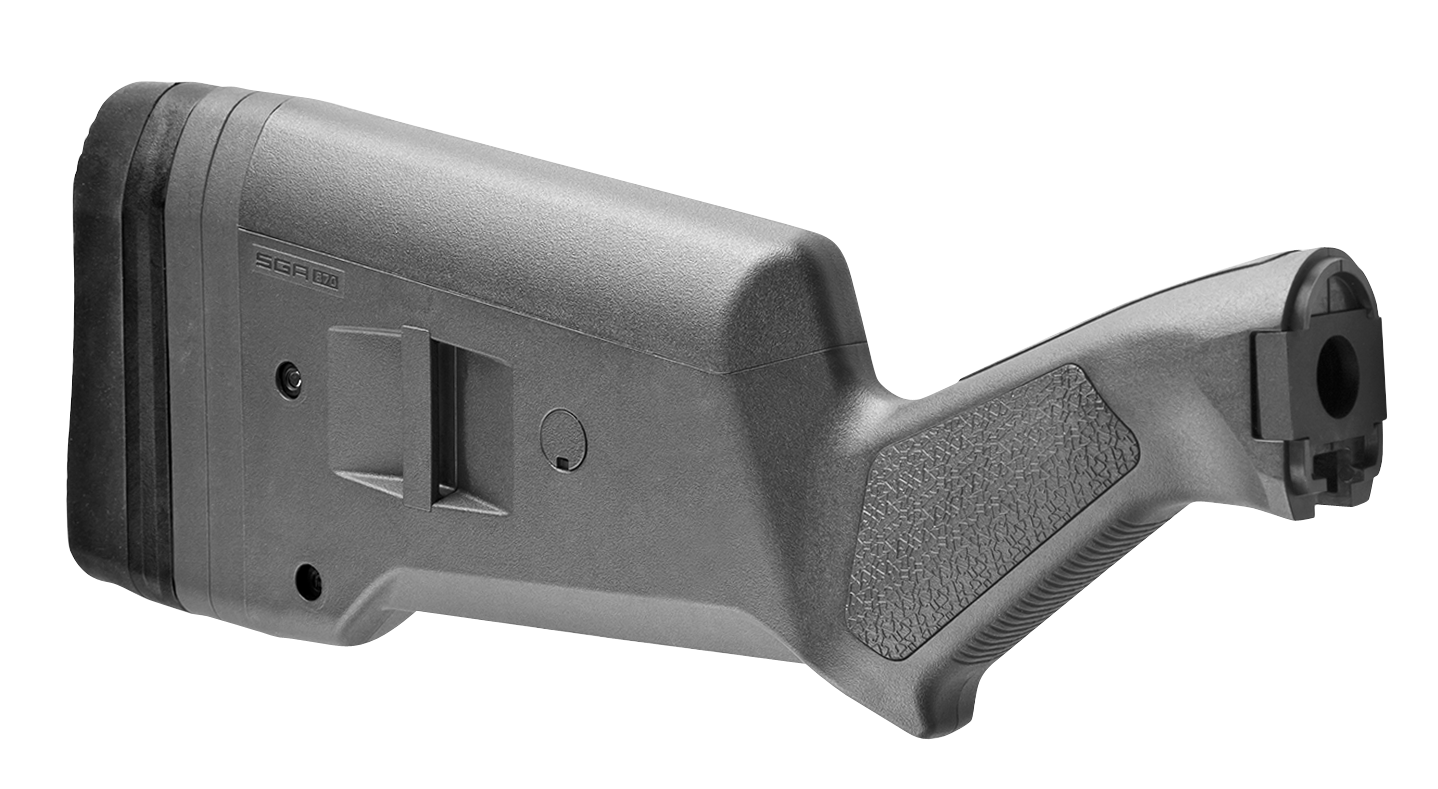 Made in the usa, the sga stock is an ambidextrous, user-configurable buttstock designed to add much-needed adjustability to the tried and true remington 870 12ga shotgun.Featuring a spacer system for length of pull adjustment, improved grip ergonomics, recoil-reducing butt-pad, optional cheek risers for use with optics/raised sights, and other accessories.