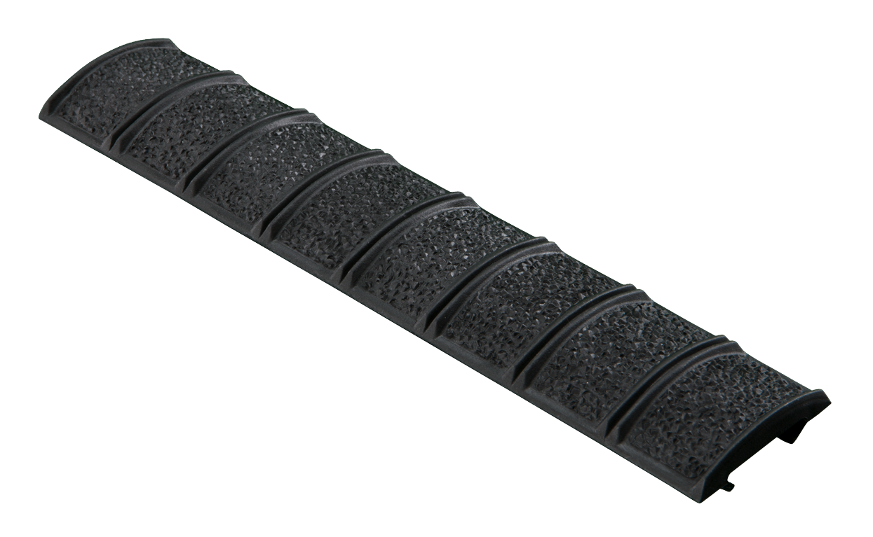 Xt rail panels offer low-profile 1913 picatinny rail coverage.The semi-rubbery material offers improved weapon control and rail protection.Easily cut for custom lengths, sections can mount next to each other to form a visually continuous cover.Each panel fits one side of a carbine-length rail.One panel per package.Finish: BlackModel: XT Rail PanelMaterial: RubberView more