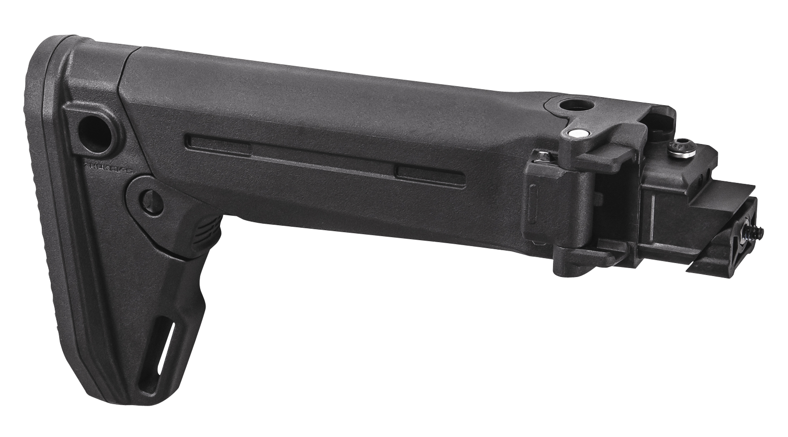 Made in the usa, the magpul zhukov-s stock is a no-compromise folding stock for the modern ak.The zhukov-s stock casts aside traditional ak stock shortcomings and offers a folding, collapsible stock with qd sling mounts, modular cheek risers, and a shock-absorbing rubber butt-pad for superior traction.The zhukov-s has right-side folding for compatibility with side-mounted optics.Designed to fit most common stamped ak receivers without modification via a unique wedge block, the durable injection molded polymer zhukov-s stock redefines the human interface with the ak platform.