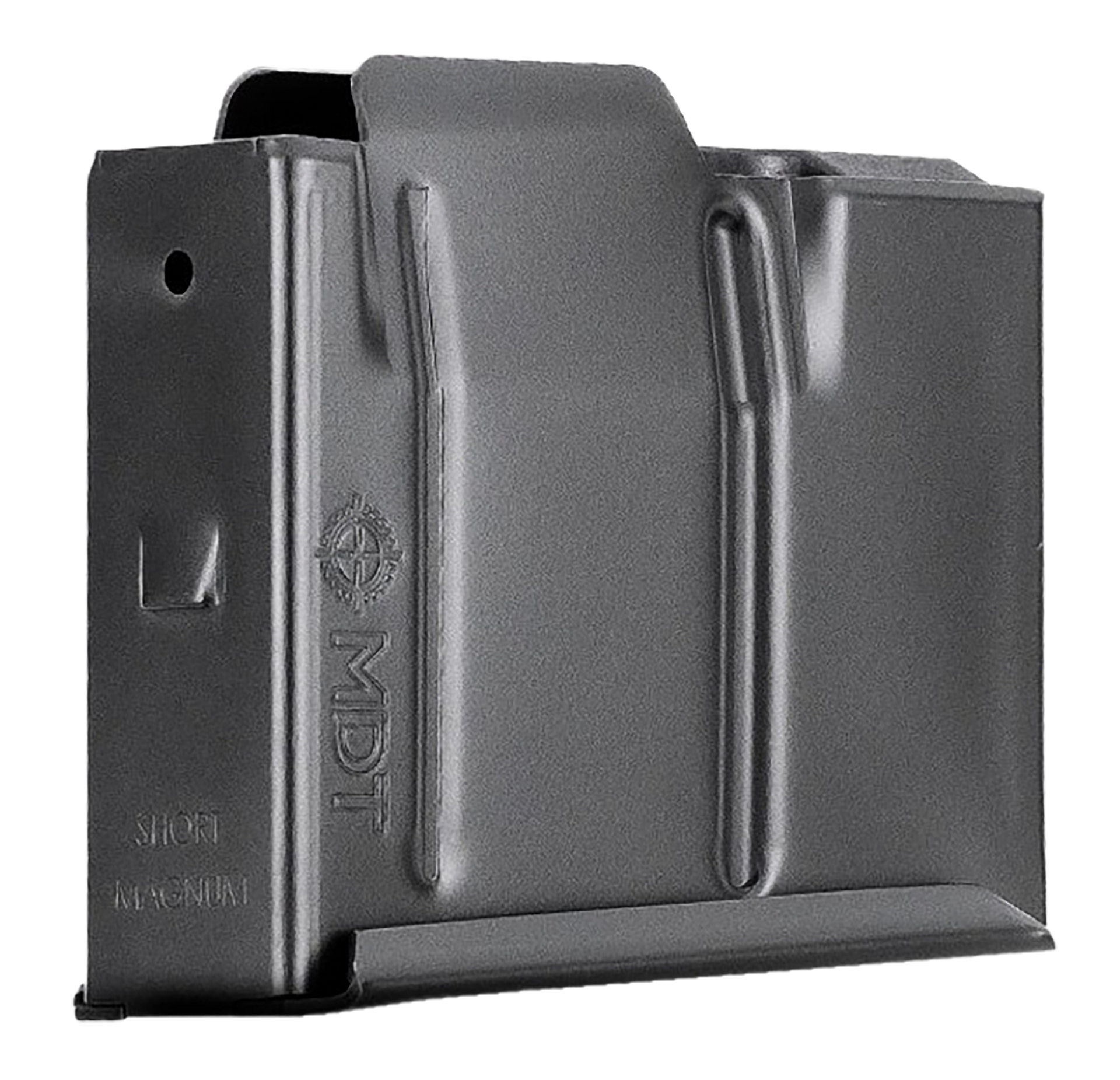 These magazines are designed with a unique double stack to single feed (dssf) transition design for reduced overall height compared to the industry standard.Mdt aics-pattern metal magazines are manufactured from high strength steel, nitrided, and finished inside and outside with cerakote elite for ultimate durability, corrosion resistance, and friction reduction.Compatibility: 6.5 prc, 270 wsm, 7 rsaum, 300 wsm.The magazines without front binder plates allow a maximum cartridge overall length of 2.960.These are compatible with all aics-pattern bottom metal and chassis systems, but most common actions such as remington 700 and savage 10/11 will require modifications to the receiver (i.E.Notching out the bottom of the feed ramp) to prevent the bullet tips from catching on the bottom of the feed ramp (see photo below).