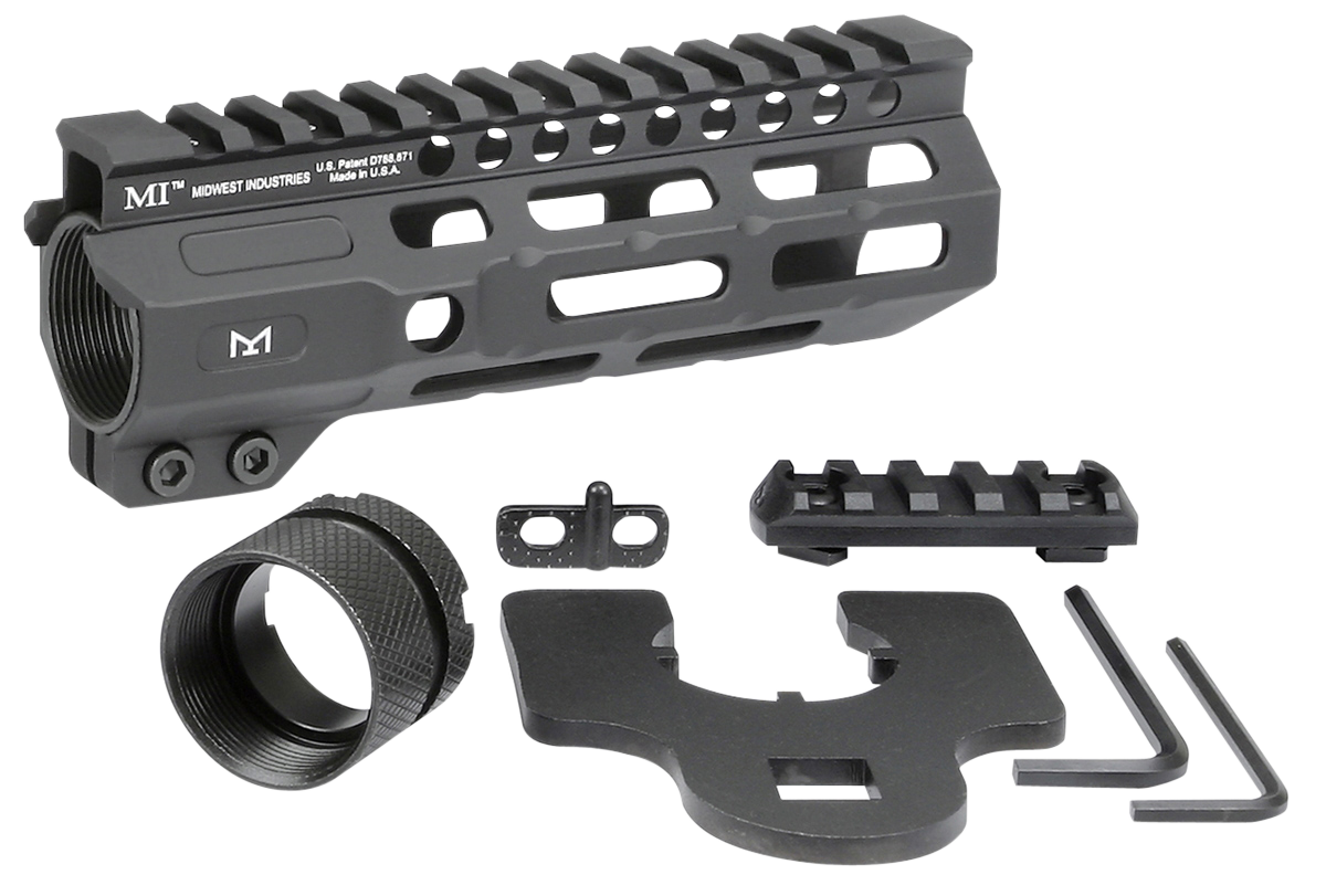 The combat m-lok handguard is constructed of 6061 aluminum with a continuous 1913 picatinny top rail, two integral anti-rotation qd sling sockets and seven sides of m-lok.It also utilizes a 4140 heat treated barrel nut, 4140 heat treated torque plate, and is fully dehorned and deburred.The handguard includes a barrel nut, wrench and 5-slot polymer m-lok rail.Made in usa.