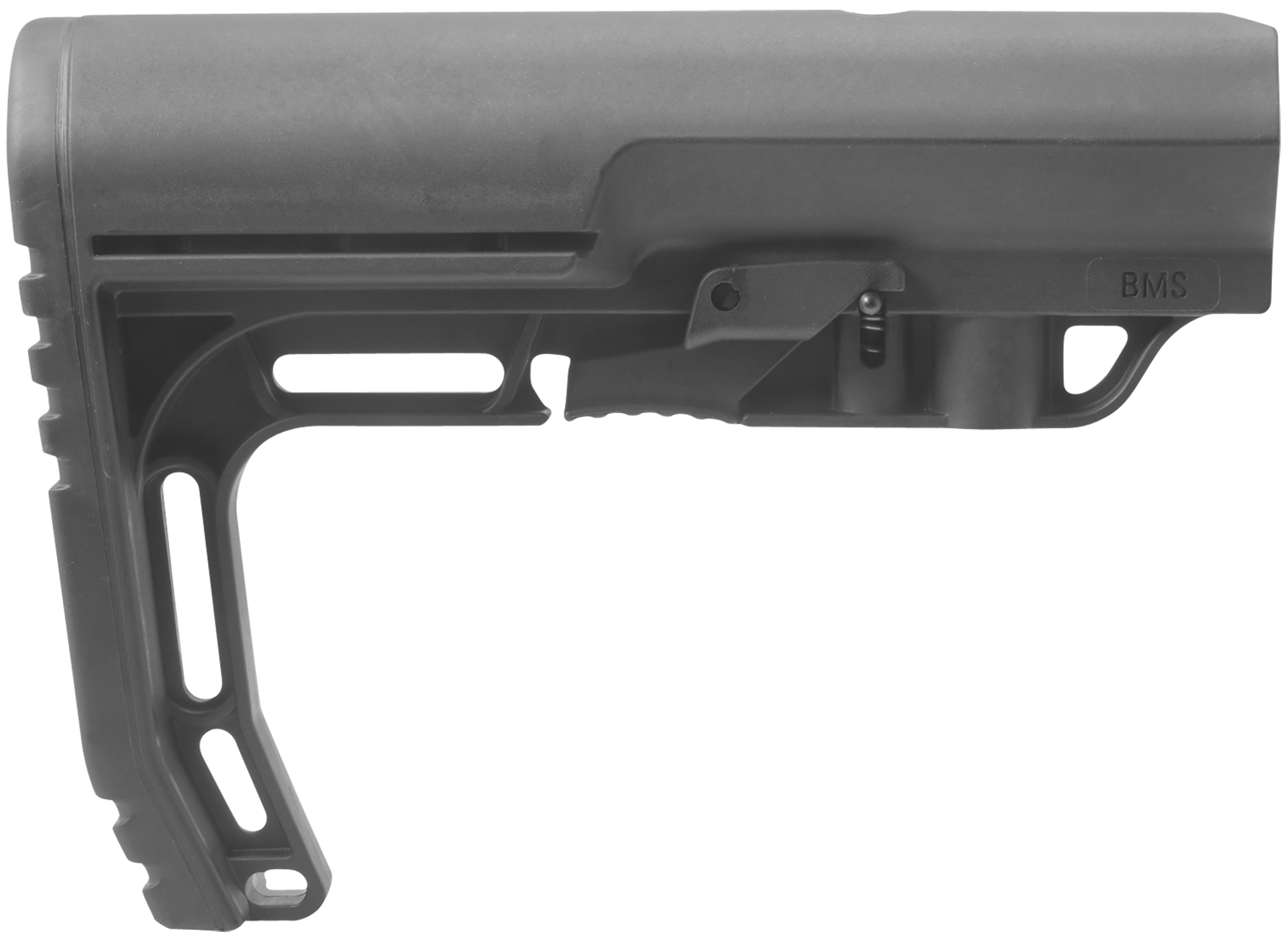This battlelink stock uses a specially developed military grade reinforced, super tough polyamide.The stock adapts and changes to the environment or operational needs by utilizing custom accessory mounts and is able to accept a new optimized sling configuration.It is a slide-on replacement for the original collapsible butt stock, the angled non-slip rubberized buttpad allows faster presentation, and its quick detach sling mounting point is positioned for optimum usage including ambidextrous shooters.