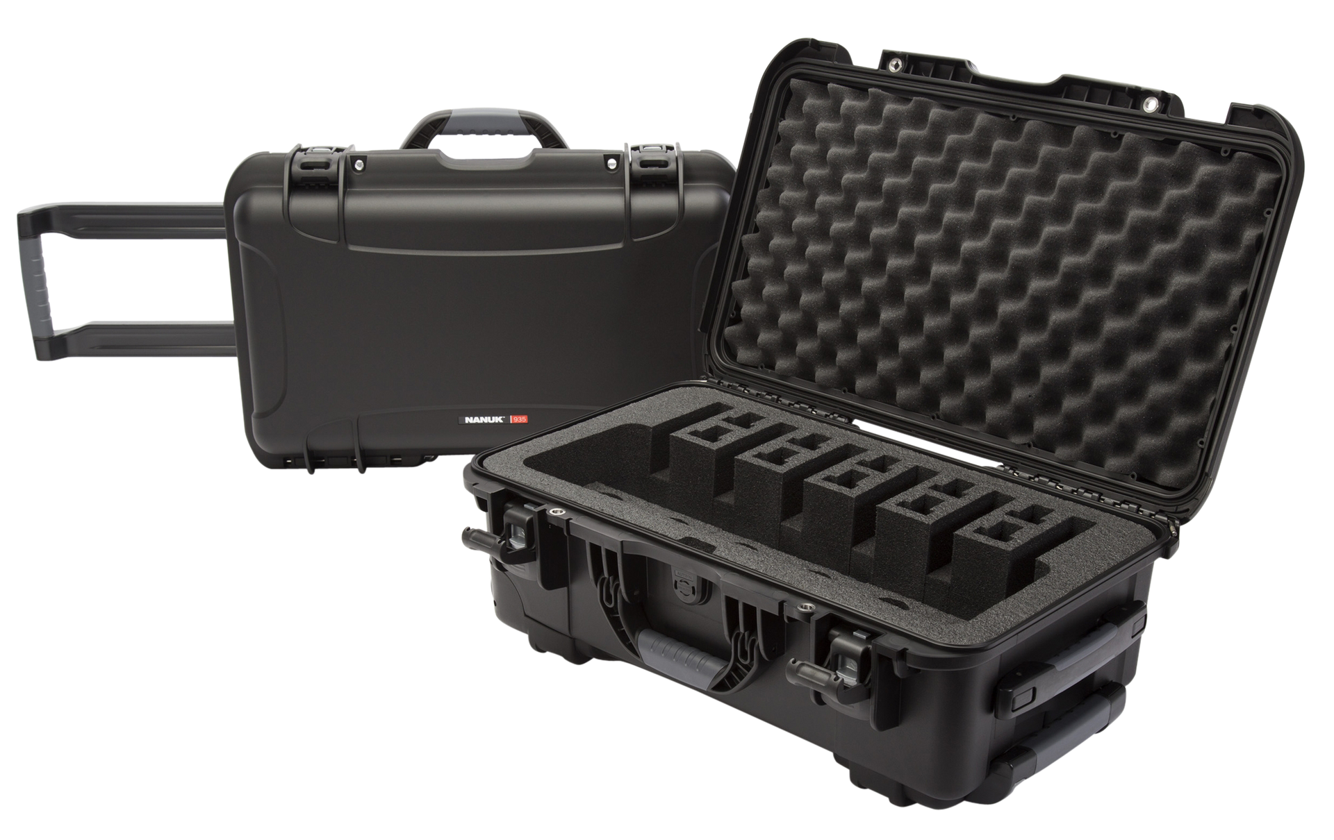 The 6 up pistol case provides secure storage for up to 6 handguns and 10 single or double stack magazines.Perfect for law enforcement, military and gun enthusiasts, this case features resistant closed cell pef foam construction for long term performance.The case will also accept 1911 style guns and accommodate guns fitted with trigger locks.With 2 reinforced eyelets for locking, you can store, secure and transport your expensive handguns with confidence.Polyurethane wheels and a one touch pull handle make transportation easy and convenient.The center foam insert can be removed to reconfigure the case for 4 handguns with a storage area for accessories.