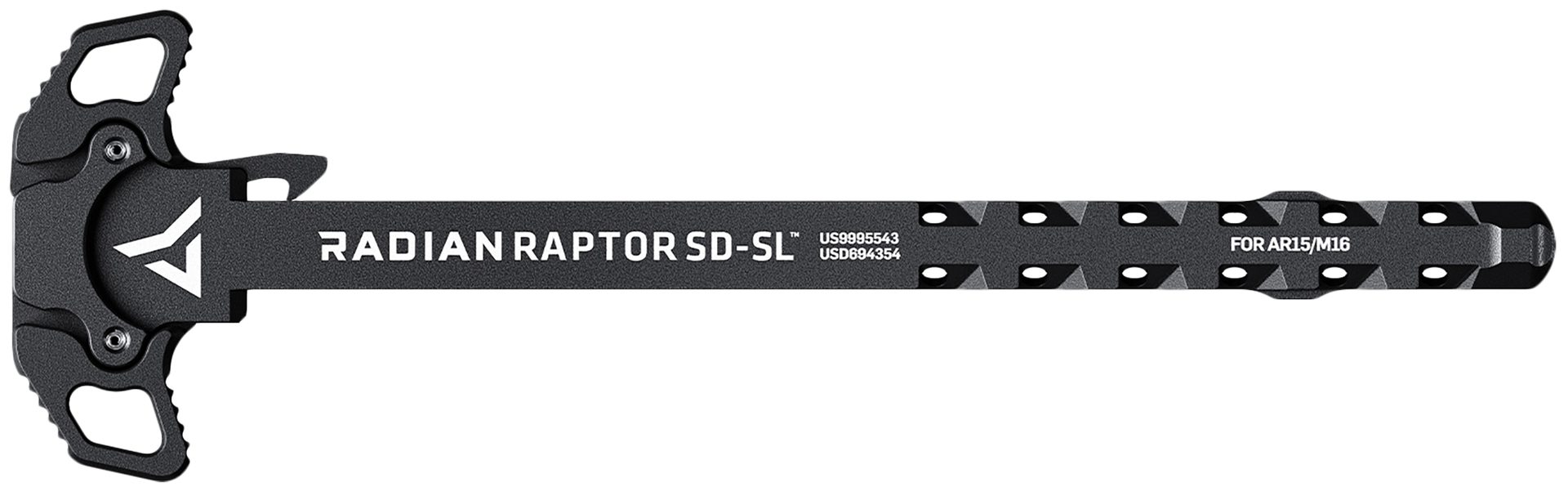 The raptor-sd-sl features slim-line handles and suppressor-optimized ported shaft for customers who require both an ultra low handle profile and gas redirecting capability while shooting suppressed.Its ambidextrous design allows rapid palm "blading" or finger-thumb charging of the weapons, ensuring the motion is fluid and fast from either strong or support side